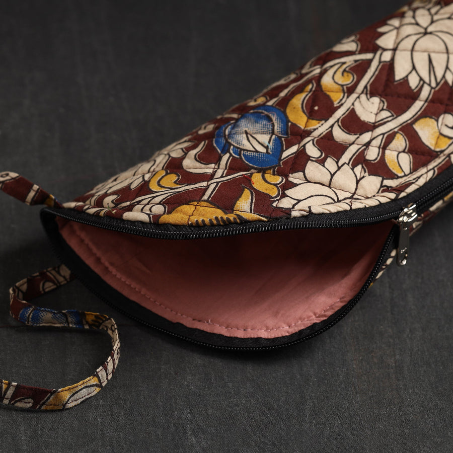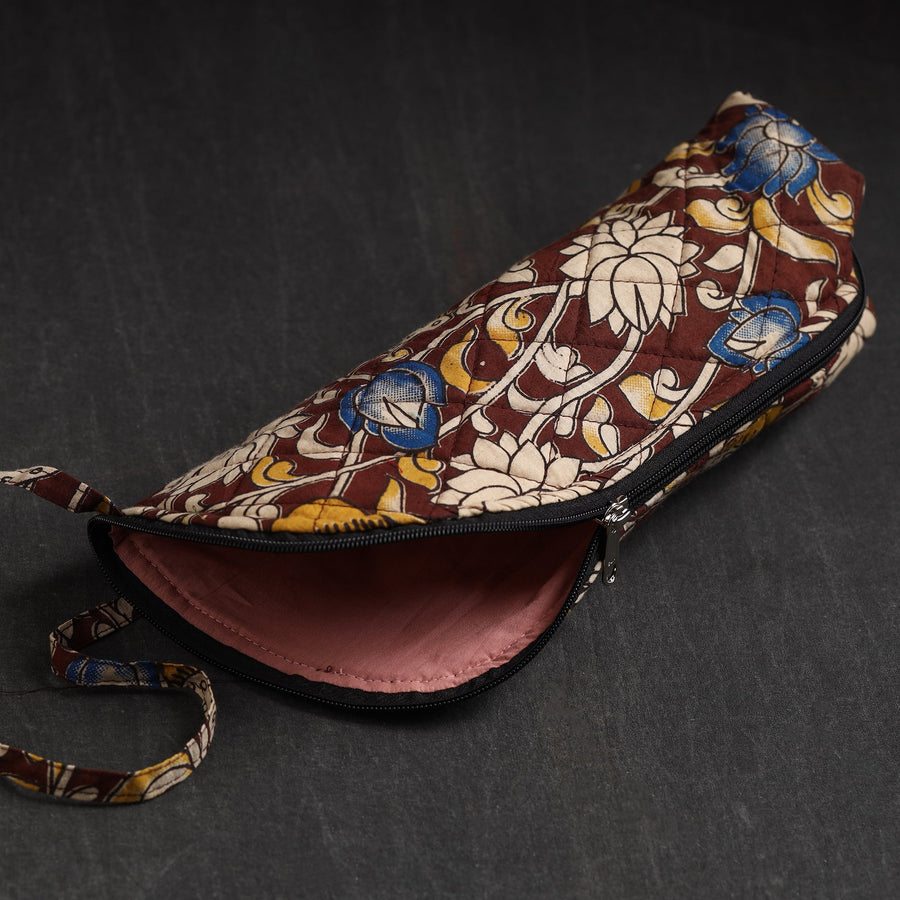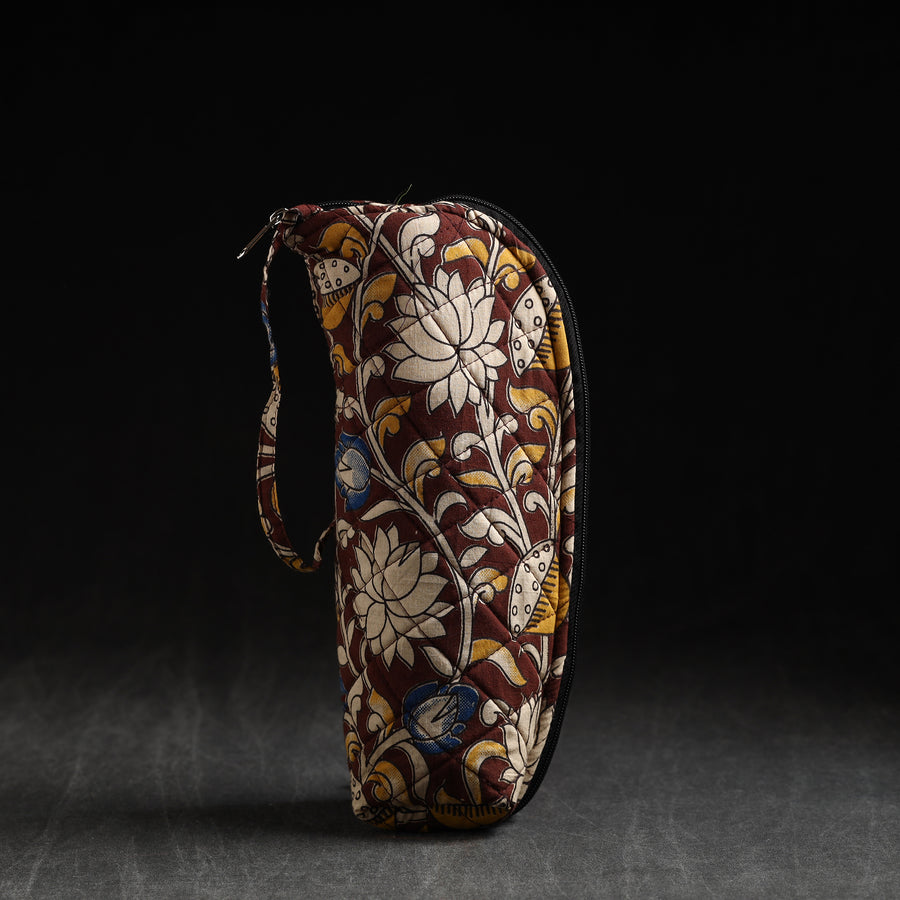 This brown handmade printed cotton water bottle cover is a charming blend of tradition and functionality. It has a cotton lining inside and a zipper main closure. Crafted from high-quality cotton, this cover adds a touch of elegance to your hydration routine. Designed to fit most bottles, it keeps your drink insulated and protects the bottle from scratches or dents while making a fashion statement.