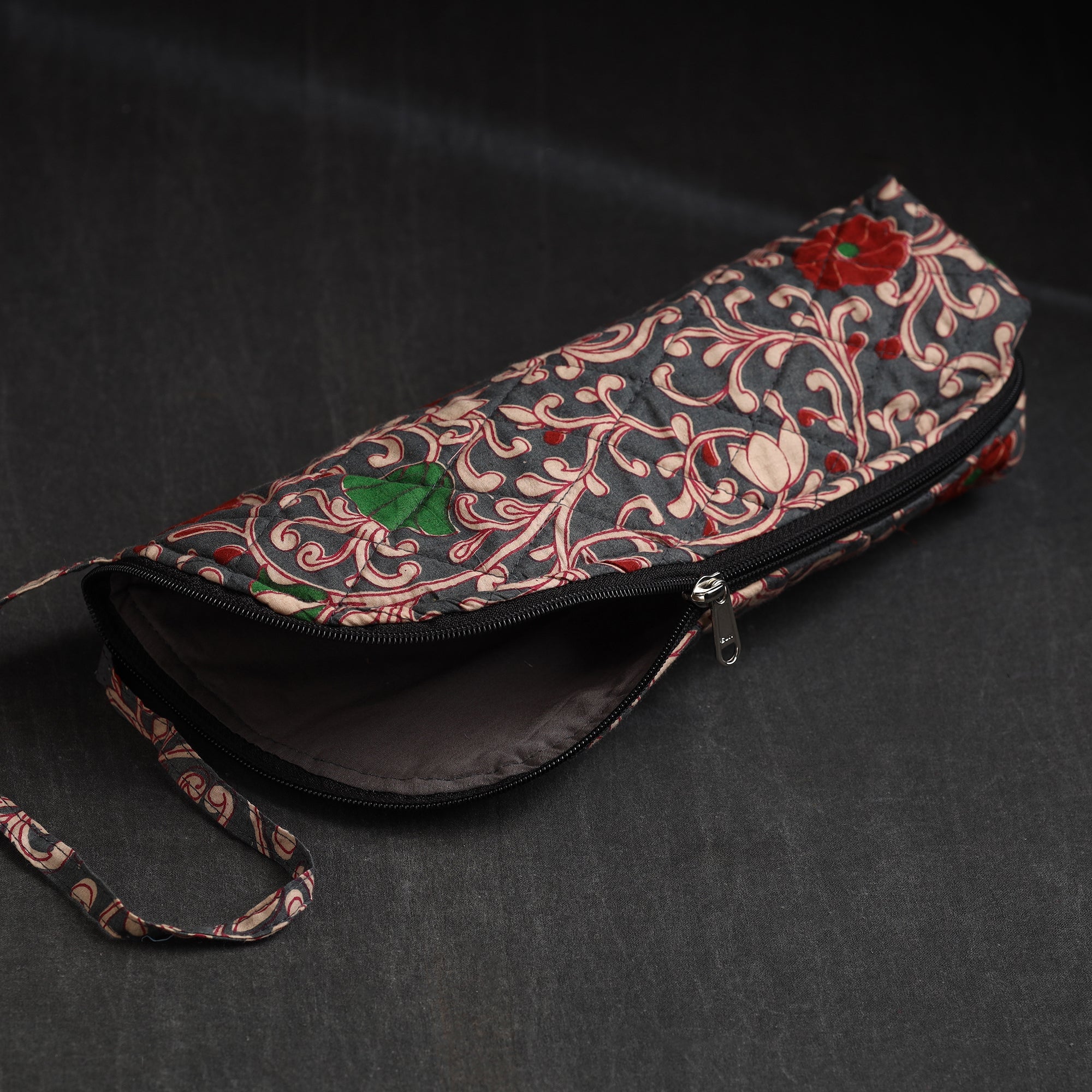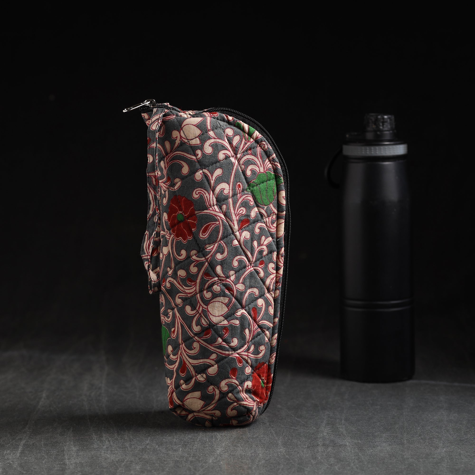 This grey handmade printed cotton water bottle cover is a charming blend of tradition and functionality. It has a cotton lining inside and a zipper main closure. Crafted from high-quality cotton, this cover adds a touch of elegance to your hydration routine. Designed to fit most bottles, it keeps your drink insulated and protects the bottle from scratches or dents while making a fashion statement.