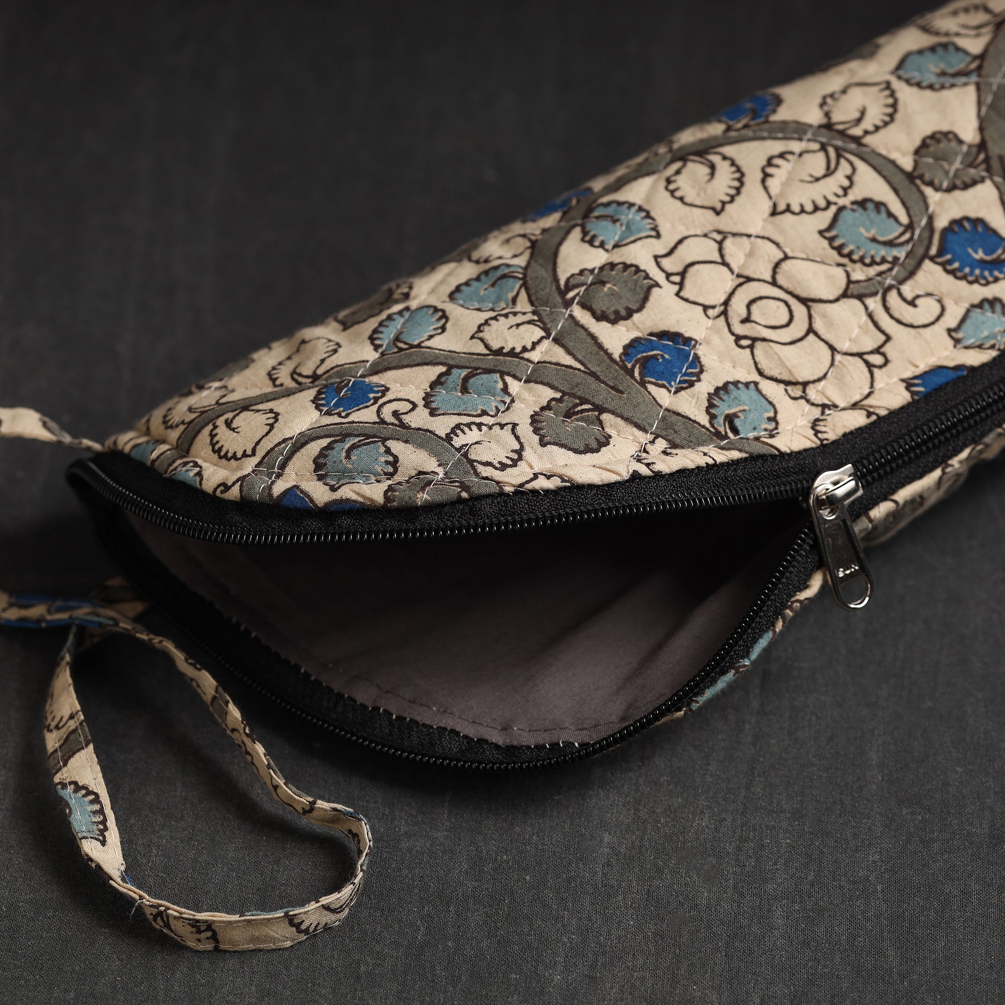 This handmade printed beige cotton water bottle cover is a charming blend of tradition and functionality. It has a cotton lining inside and a zipper main closure. Crafted from high-quality cotton, this cover adds a touch of elegance to your hydration routine. Designed to fit most bottles, it keeps your drink insulated and protects the bottle from scratches or dents while making a fashion statement.