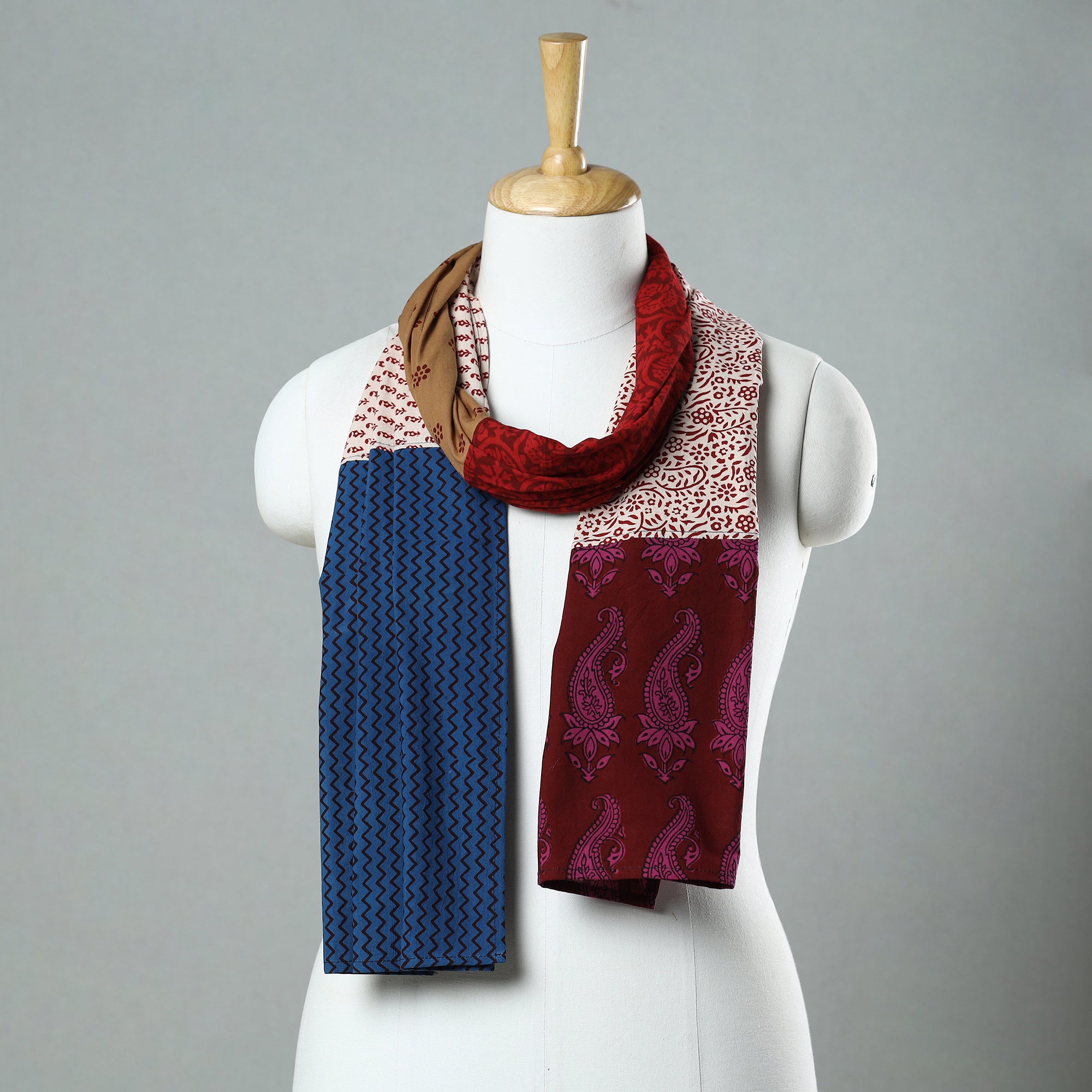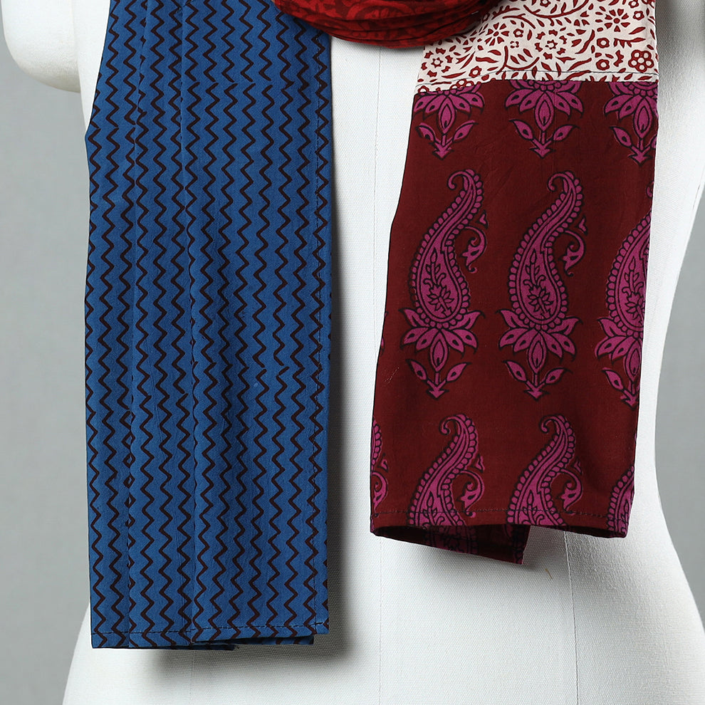 Elevate your style with our multicolor bagh block-printed patchwork cotton stole. This stole is crafted using naturally dyed cotton fabric through the traditional process of hand block printing practiced in Bagh in the Dhar district of Madhya Pradesh. Perfect for any occasion, its soft cotton fabric ensures comfort, while the intricate patchwork provides a stylish flair, making it an ideal accessory for both casual and formal wear.