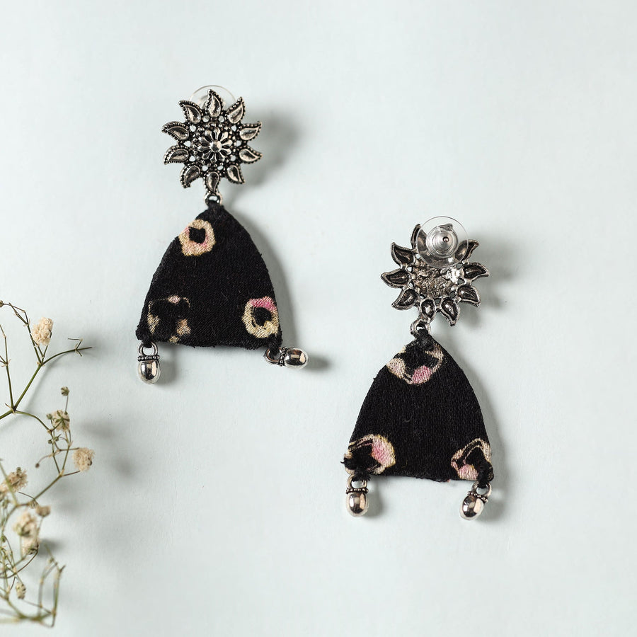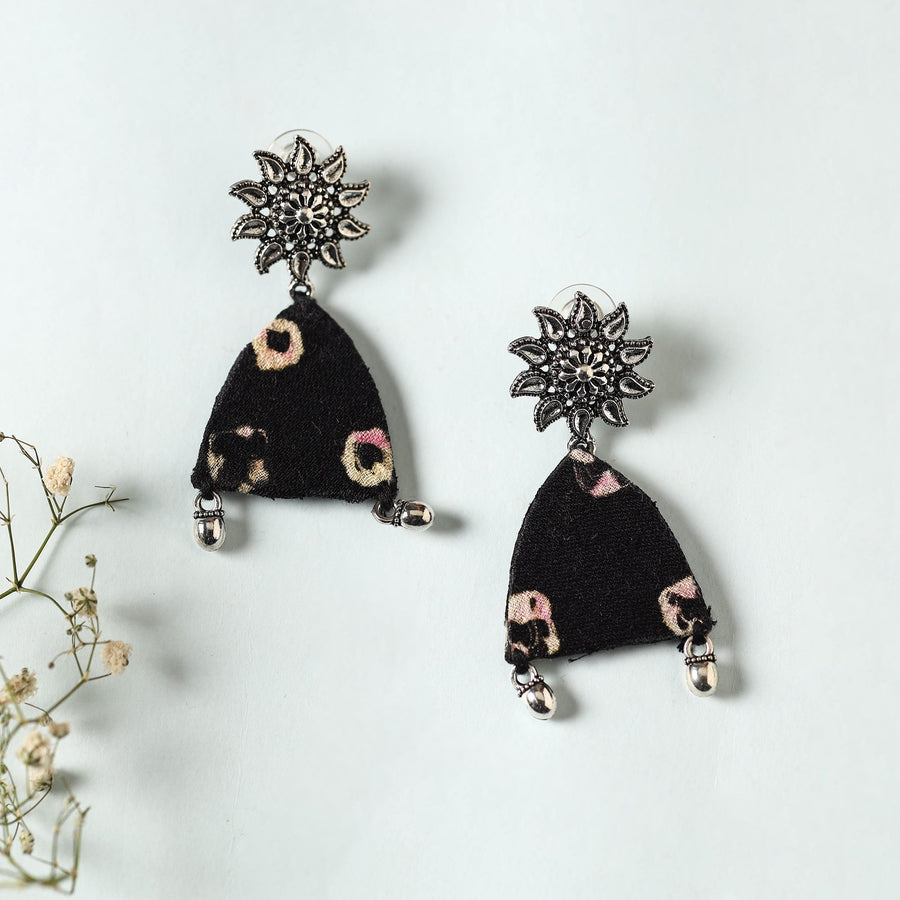 Elevate your style with our black handcrafted GS fabart earrings. Intricately designed with fabrics, these earrings exude sophistication. Versatile and stylish, effortlessly elevate any outfit by adorning these exquisite earrings, showcasing a perfect blend of tradition and contemporary charm.