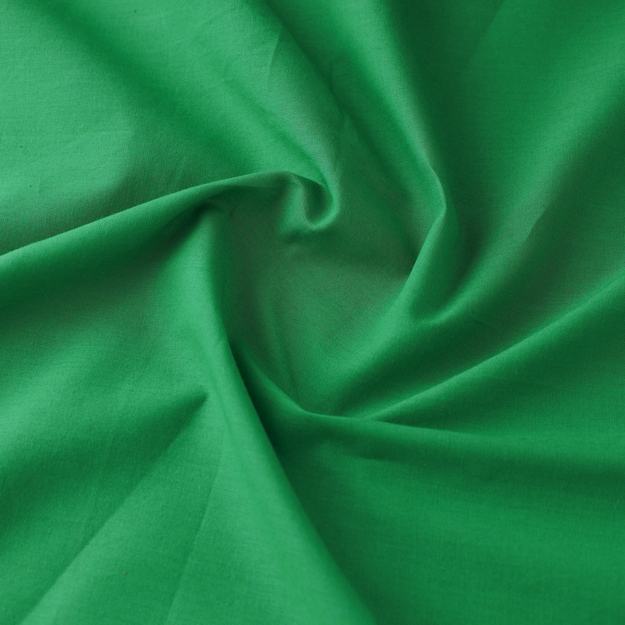Fine quality green prewashed plain dyed cotton fabric. This is a machine made fabric; no handmade processes have been involved. The fabric originates from Jaipur, Rajasthan, and is ideal for a variety of projects due to its softness and durability.