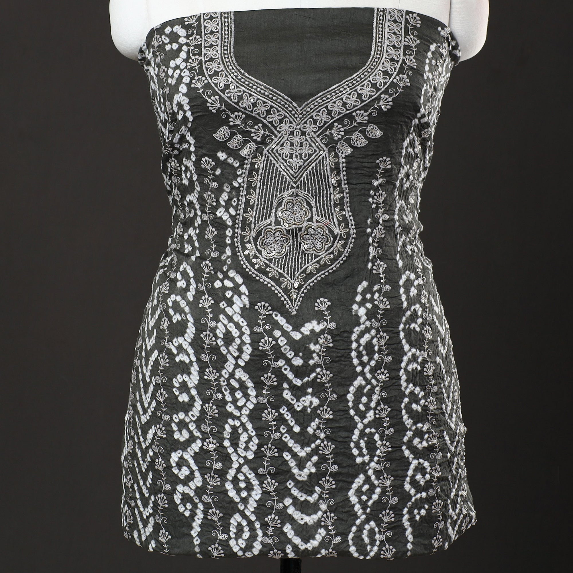 Grey - 3pc Kutch Bandhani Tie-Dye Sequin Work Satin Cotton Unstitched Suit Material Set 20