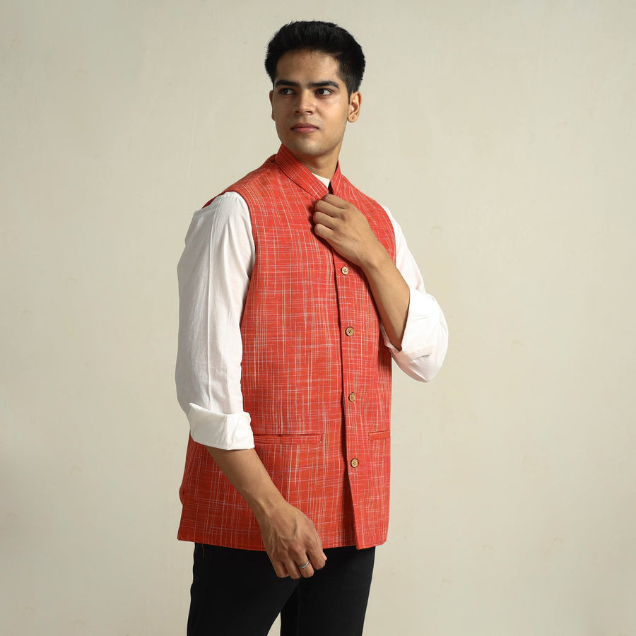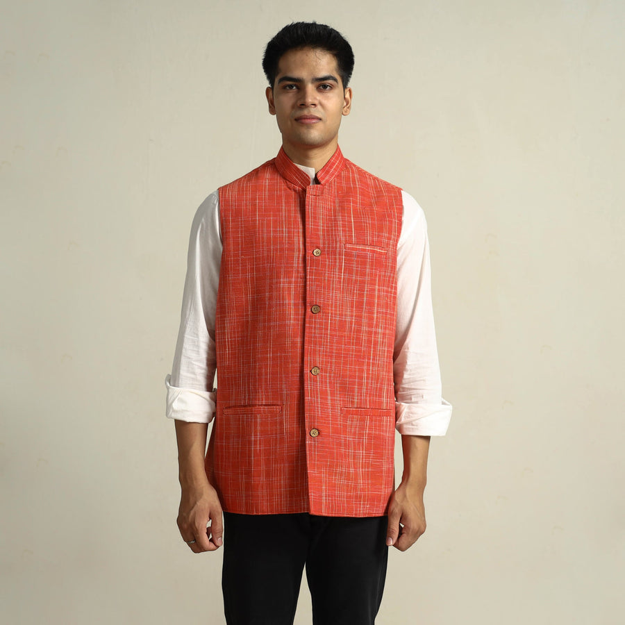 | Material | Stylish and comfortable, this pure cotton handloom nehru jacket for men features traditional craftsmanship with modern appeal. this sleeveless jacket boasts a Chinese collar and a full-button placket, exuding sophistication. The three outer pockets add functional flair. |
