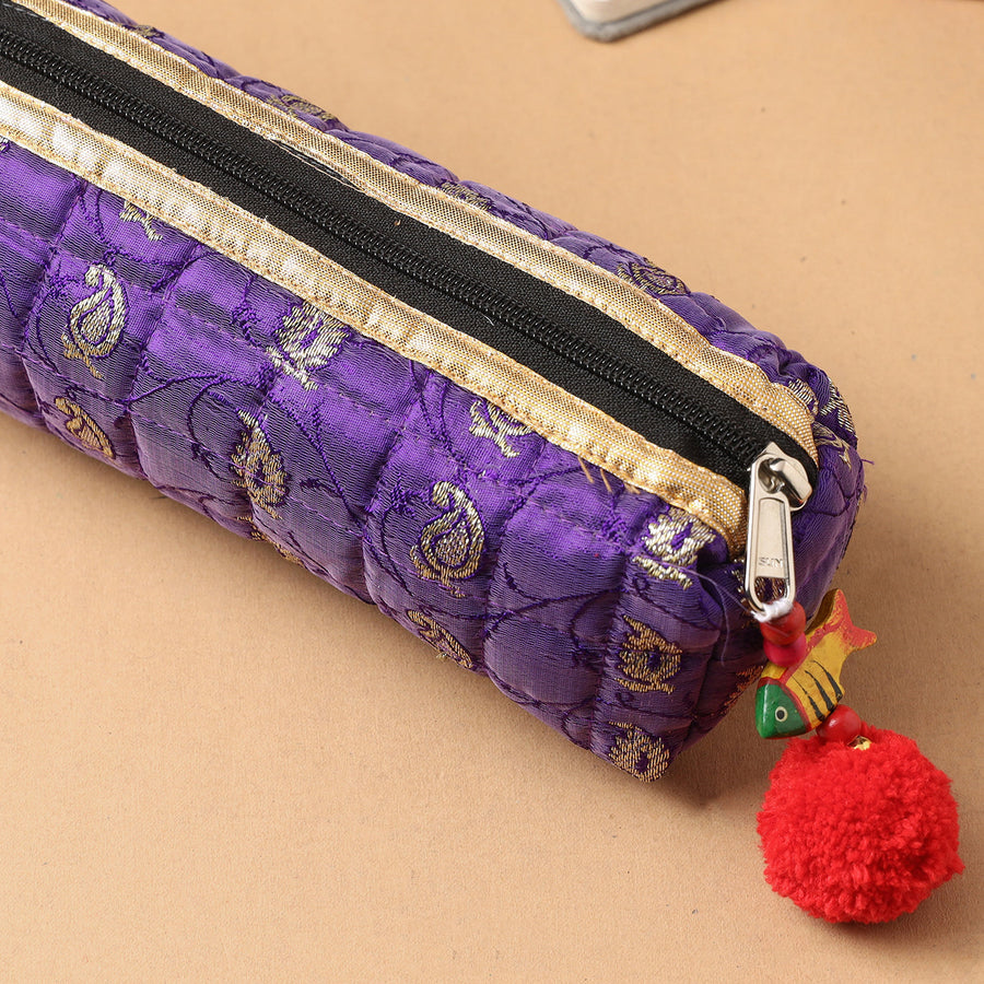 Handcrafted Quilted Banarasi Pencil Pouch 11