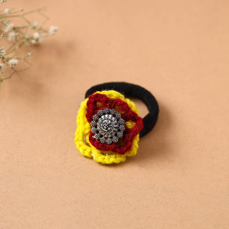 Handmade crochet rubber bands feature stylish flower patterns in beautiful colors, perfect for kids and ladies. made from crochet customizable materials ensure a perfect fit for any style.