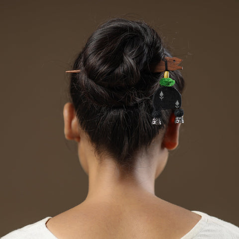 Handmade wooden juda stick made from mixed fabric with katran artworks on wooden juda stick using beads, shells, and cotton threads.
