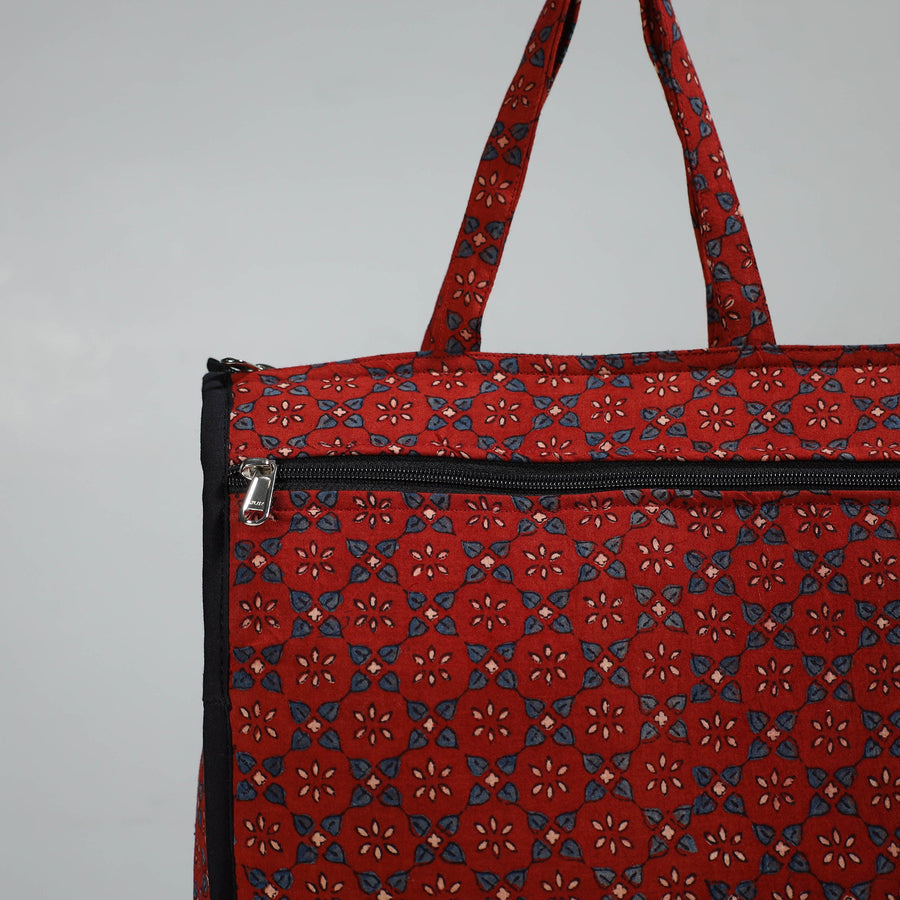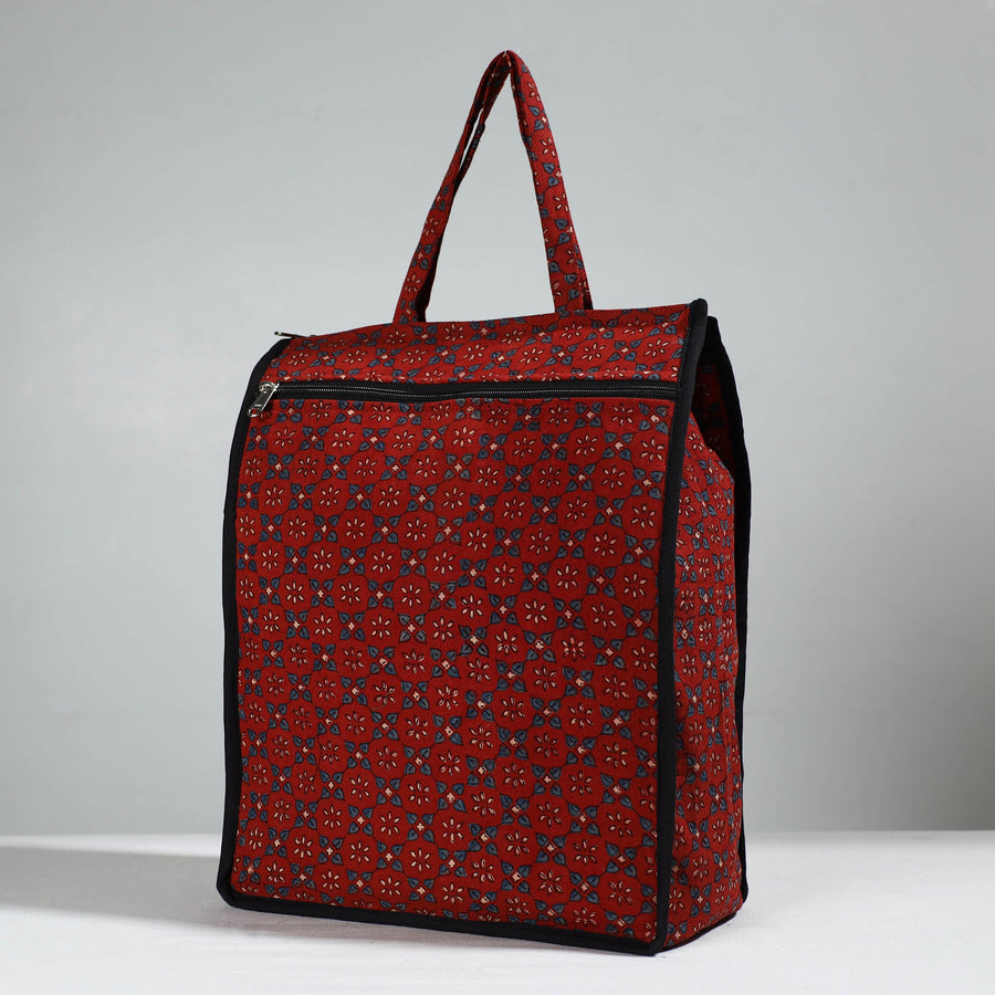 Enhance your shopping routine with our red handcrafted cotton shopping bag. This shopping bag is made from cotton fabrics.Textured with handmade textiles from India, it is a convenient, stylish, and sustainable companion for your daily shopping, and it has enough space to accommodate most of the items.