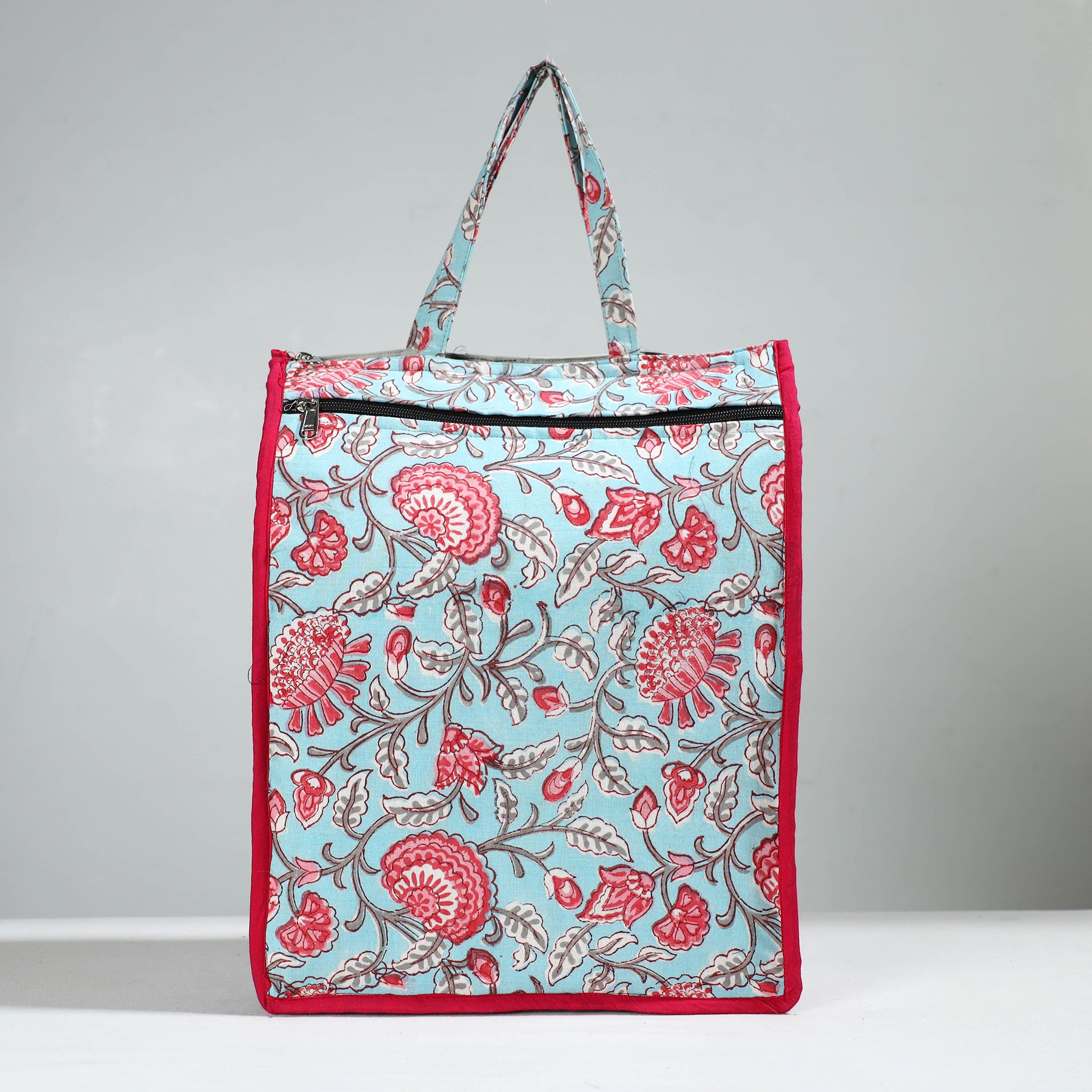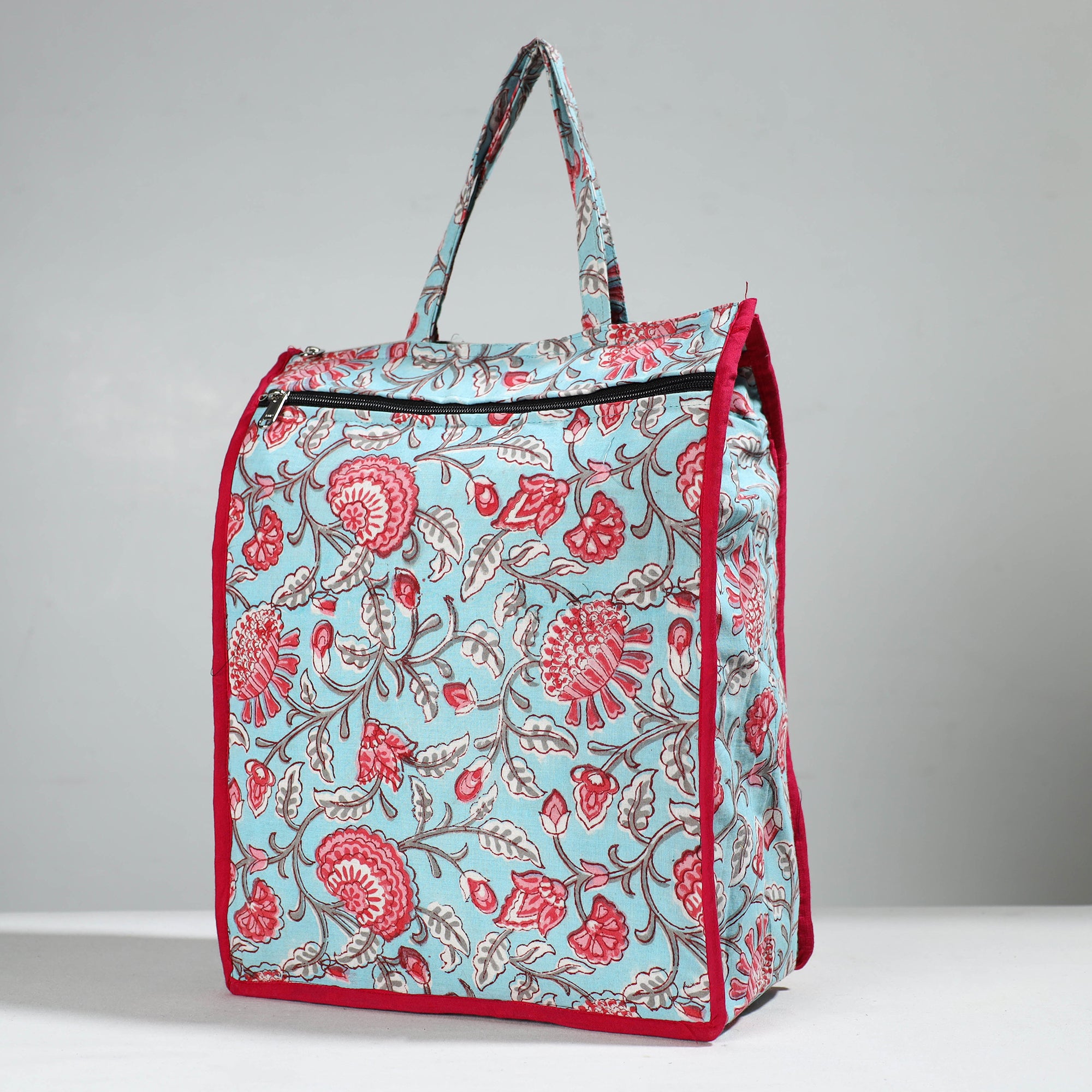 Enhance your shopping routine with our blue handcrafted cotton shopping bag. This shopping bag is made from cotton fabrics.Textured with handmade textiles from India, it is a convenient, stylish, and sustainable companion for your daily shopping, and it has enough space to accommodate most of the items.