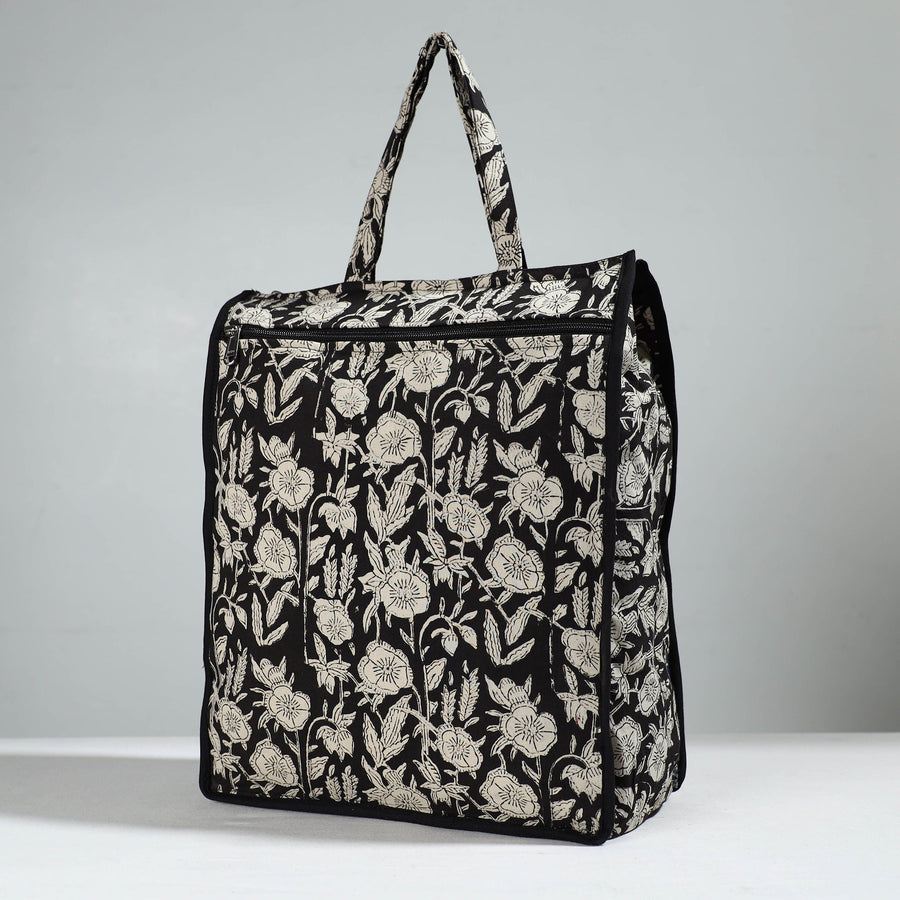 Enhance your shopping routine with our black handcrafted cotton shopping bag. This shopping bag is made from cotton fabrics.Textured with handmade textiles from India, it is a convenient, stylish, and sustainable companion for your daily shopping, and it has enough space to accommodate most of the items.