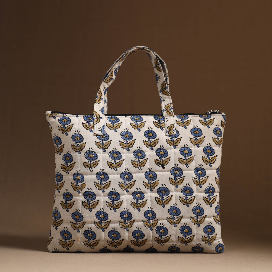 This white hand bag is made from handcrafted quilted cotton fabric. This hand bag with a zip-lock main closure, providing ample space for your essentials. The foam layer lining ensures durability and protection. Enhance your style with this unique, functional accessory.