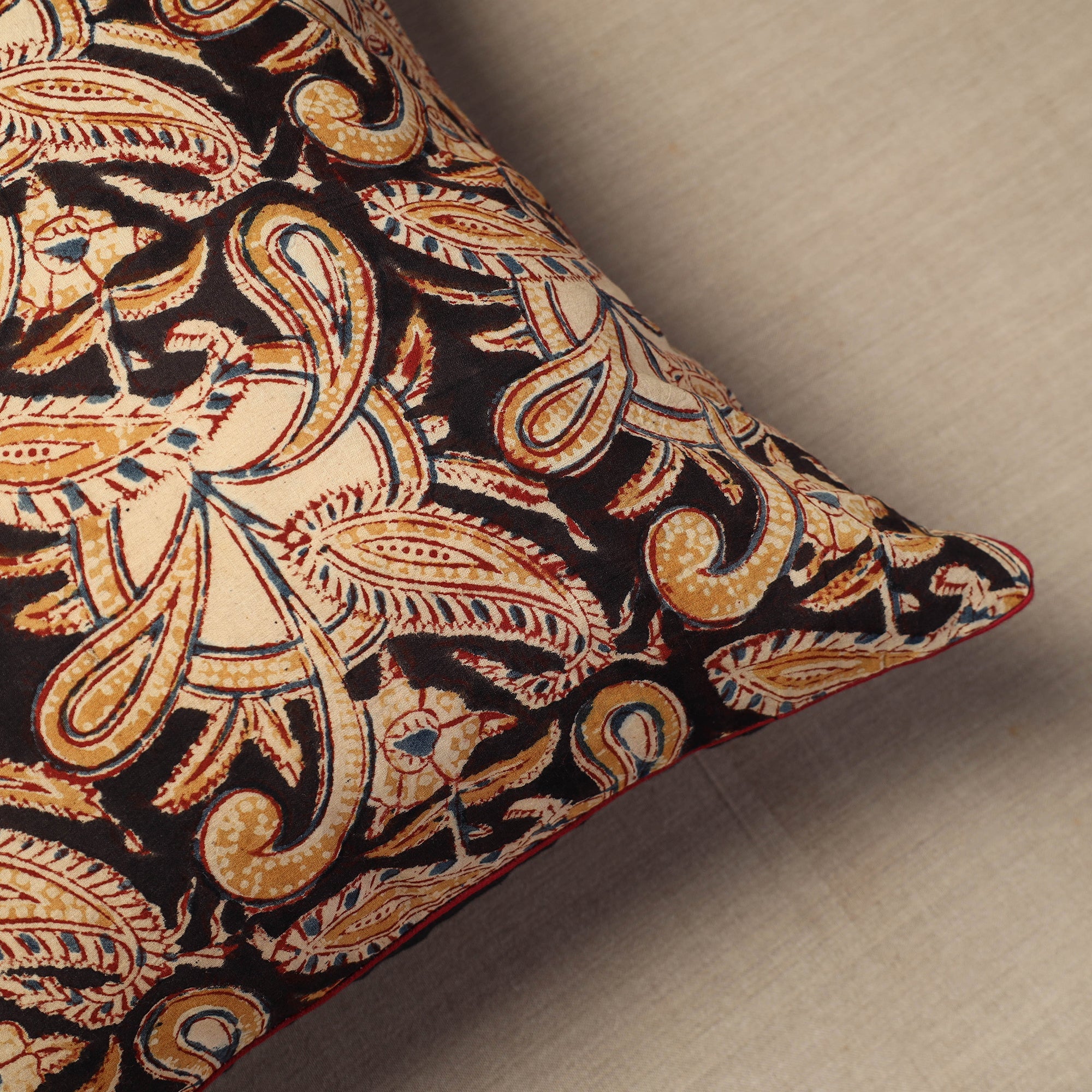 Elevate your home decor with our brown kalamakari hand-block-printed cotton cushion cover, a testament to traditional craftsmanship. Kalamkari is the earliest and more complex technique of block printing; this showcases intricate block-printed motifs on high-quality cotton.