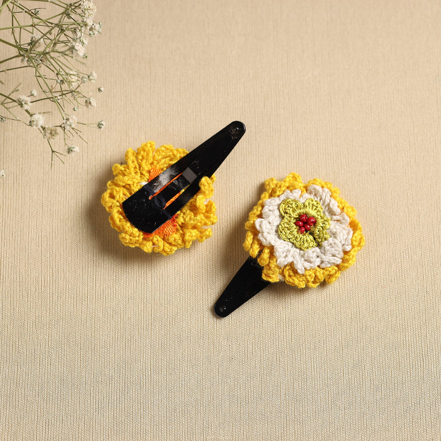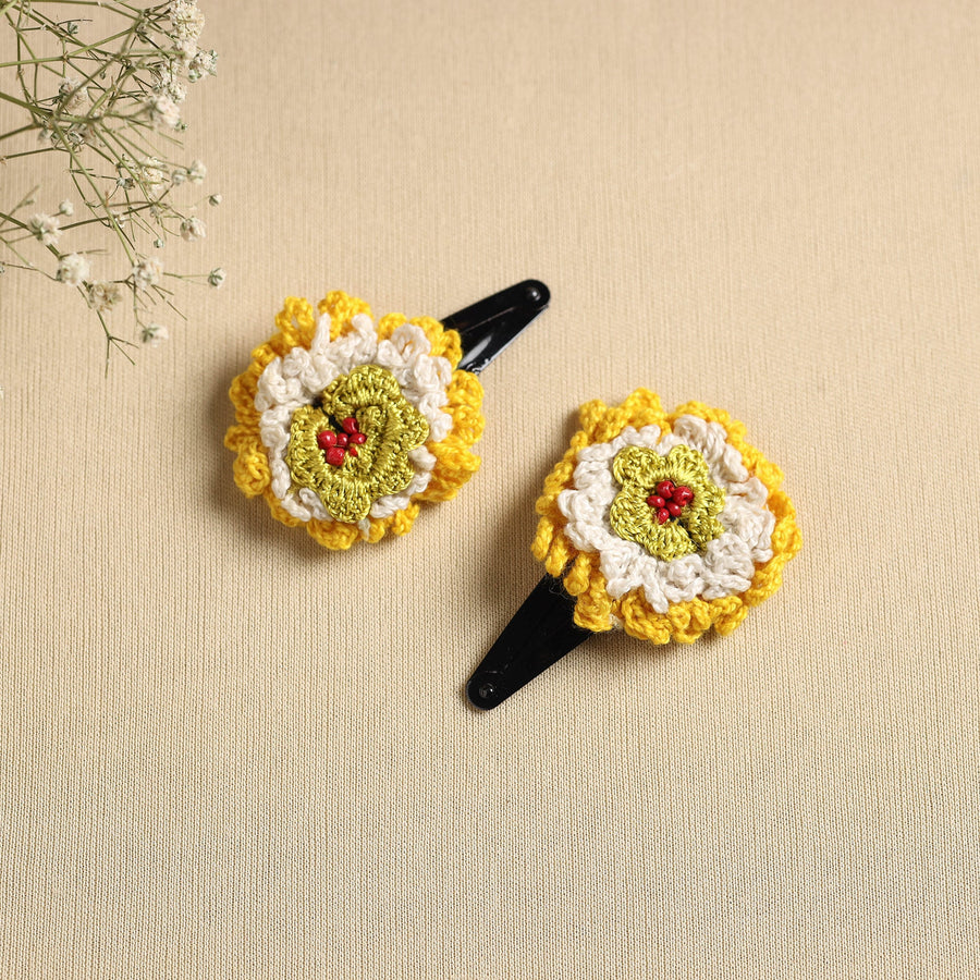 Yellow - Handmade Crochet Tik-Tak Hair Clip (Set of 2) 05