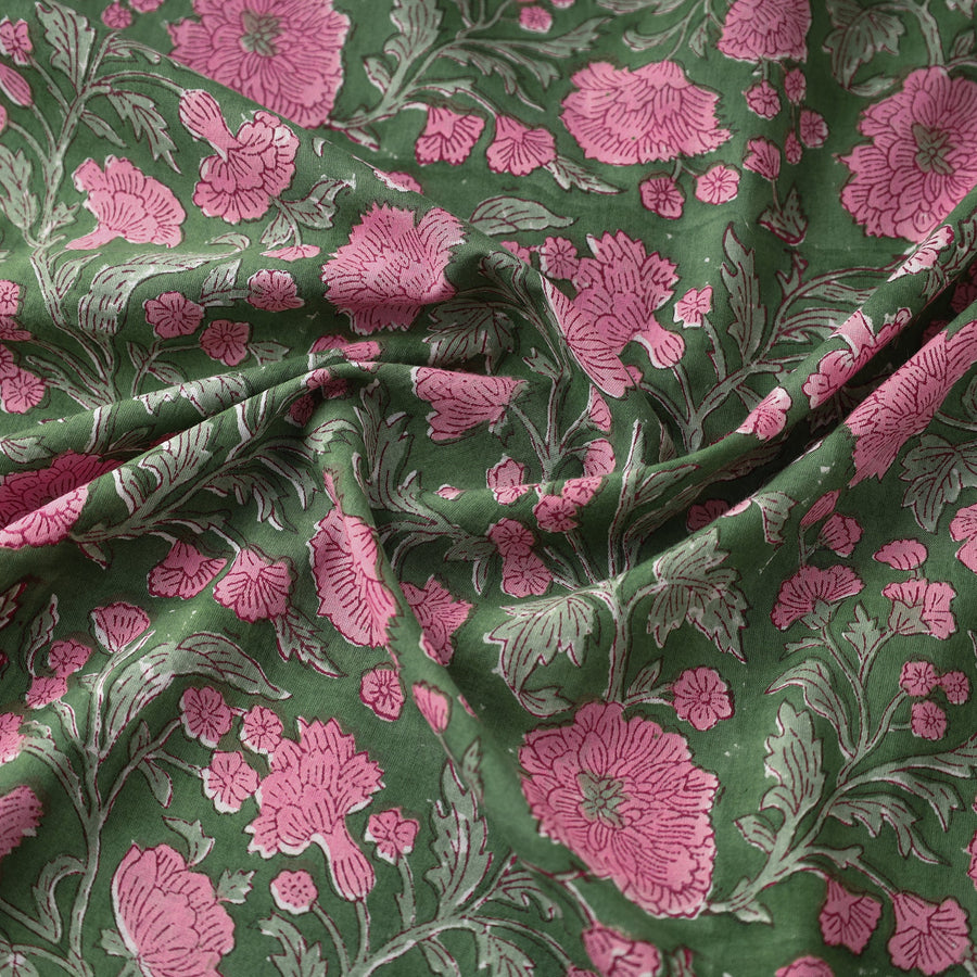 Green - Sanganeri Block Printed Cotton Fabric 06