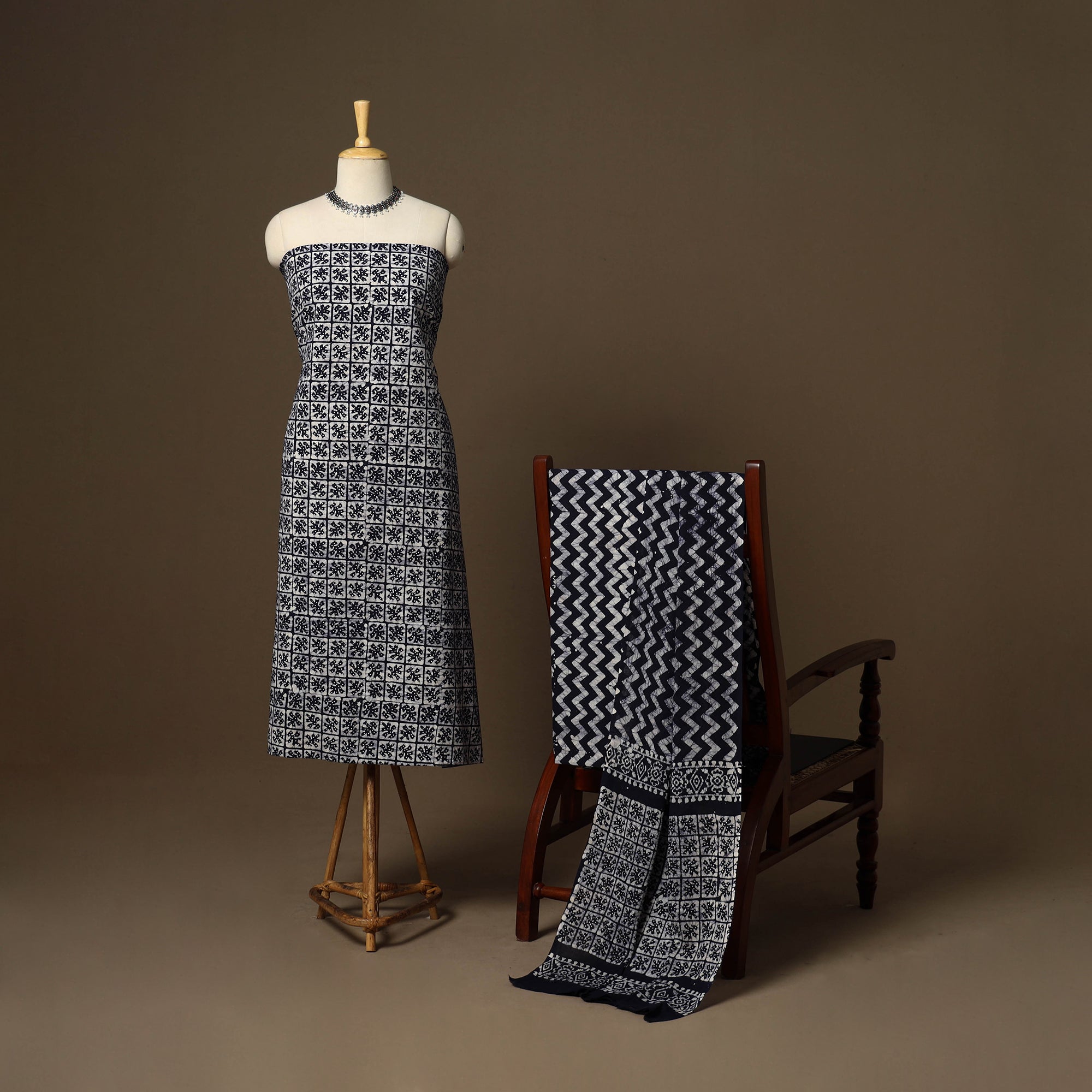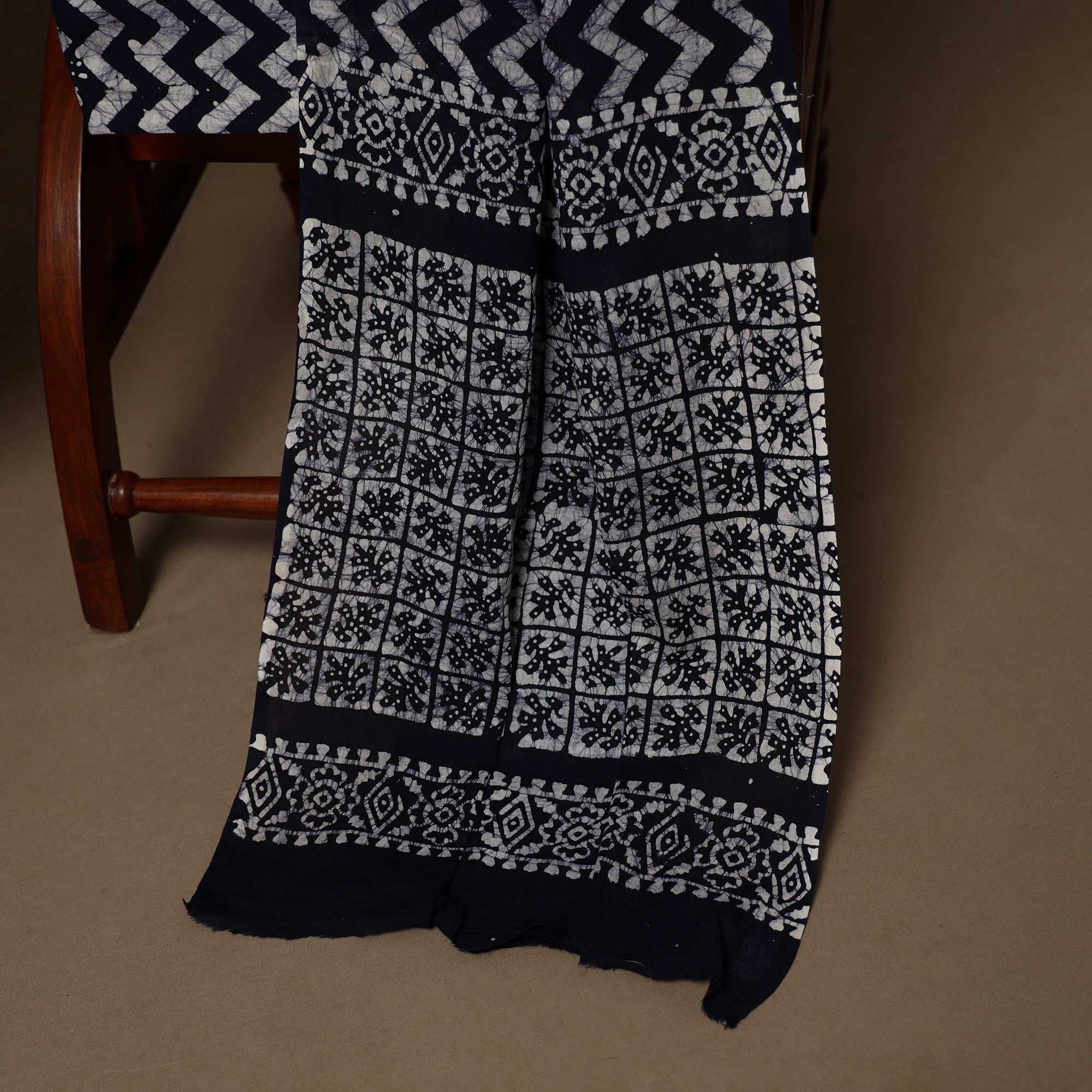 This black 3pc cotton kutch batik print dress material, crafted in Kutch using traditional wax-resist dyeing techniques. Batik offers both durability and comfort, making it a perfect choice for everyday or festive wear. The vibrant colors and intricate designs make this set a statement piece.