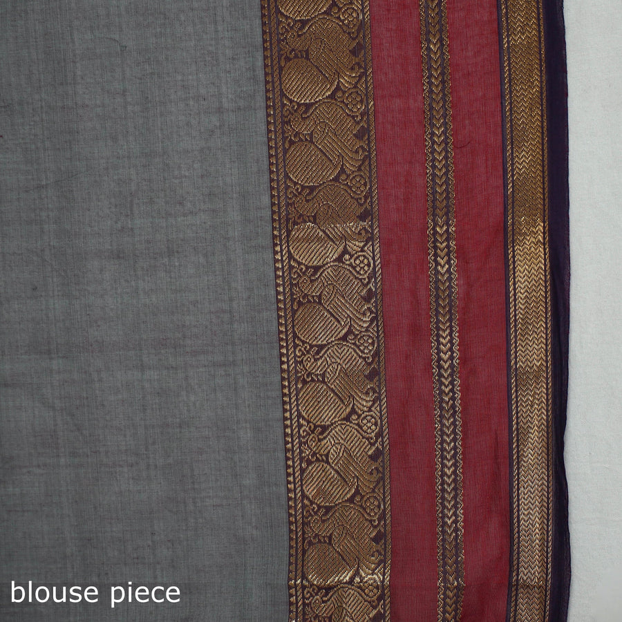 Finest quality traditional kanchipuram cotton buti saree with zari border from Kanchipuram, the temple city of Tamil Nadu. The Kanchipuram cotton saree undergoes a long, meticulous weaving process wherein the signature temple border, the wide pallav, and the main body that these kanchi cotton sarees are really known for are woven individually, which are then delicately woven into one single piece.