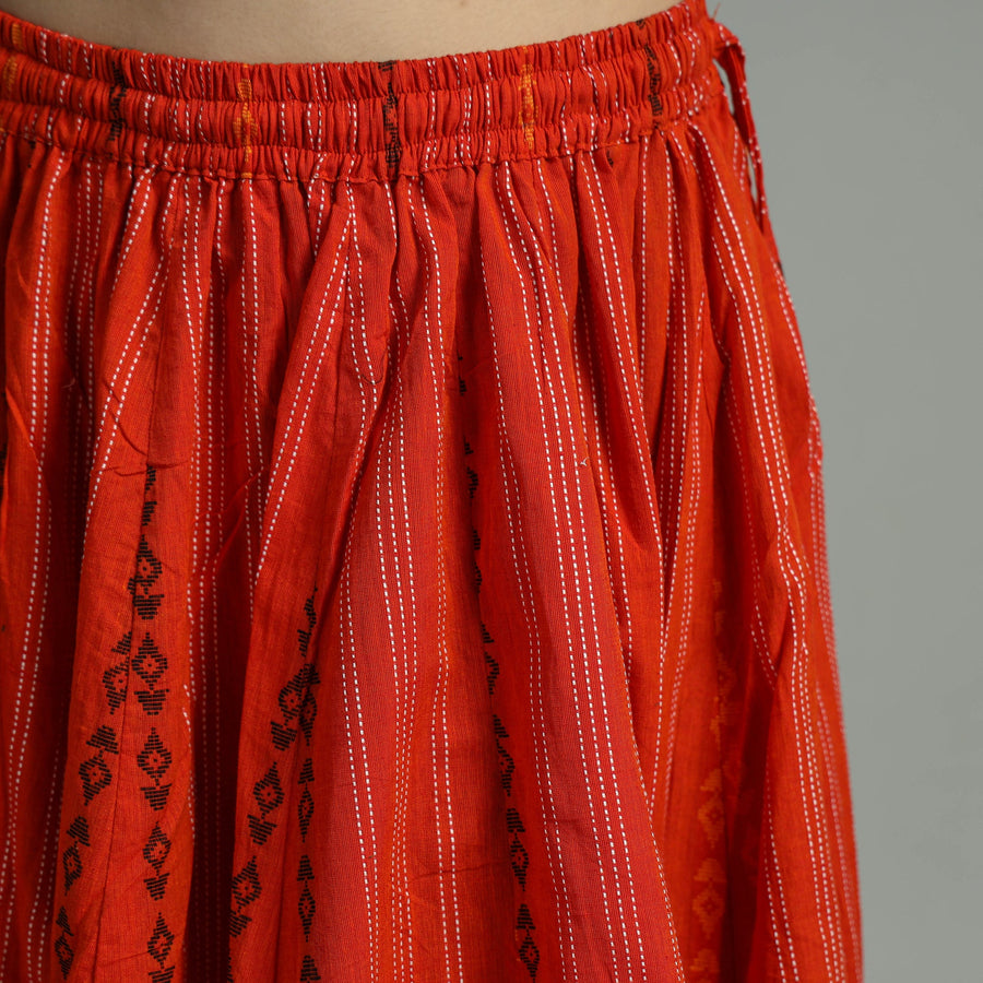 The orange jacquard patchwork 24 kali cotton long skirt features vibrant, stitched patchwork designs on cotton fabric. Crafted from jacquard weave cotton, this skirt boasts a waist tie-up closure, allowing for a customized and comfortable fit. The patchwork kali design adds a unique touch. Embrace elegance and tradition with this stunning piece.