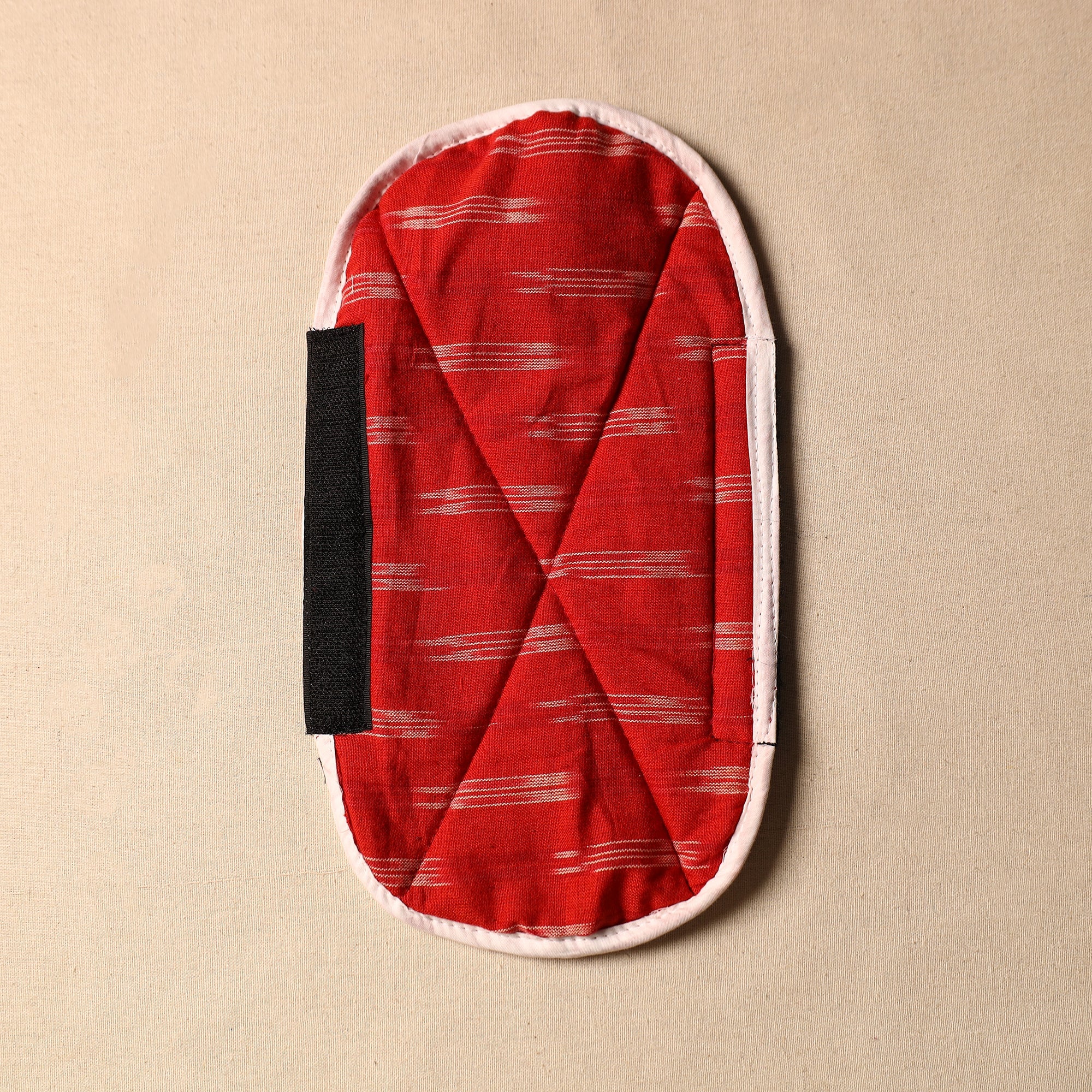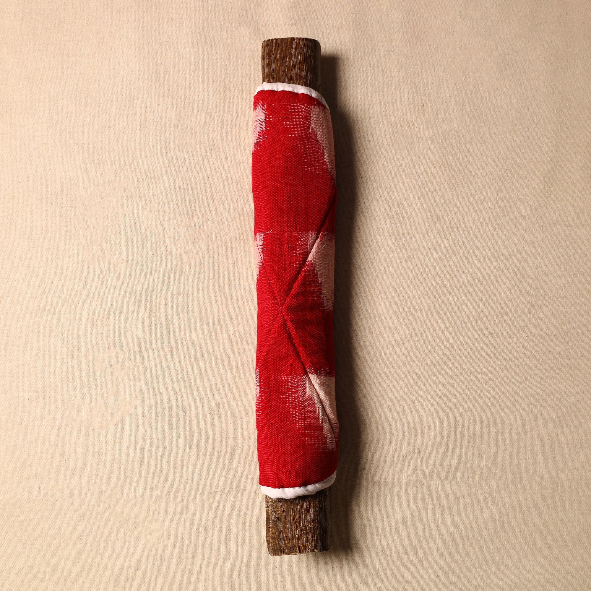 Fine-quality red handmade fridge handle cover made from cotton fabric and foam. Crafted with care, each cover features vibrant colors and intricate designs. Protect your fridge handles while infusing your space with the beauty of Indian craftsmanship.