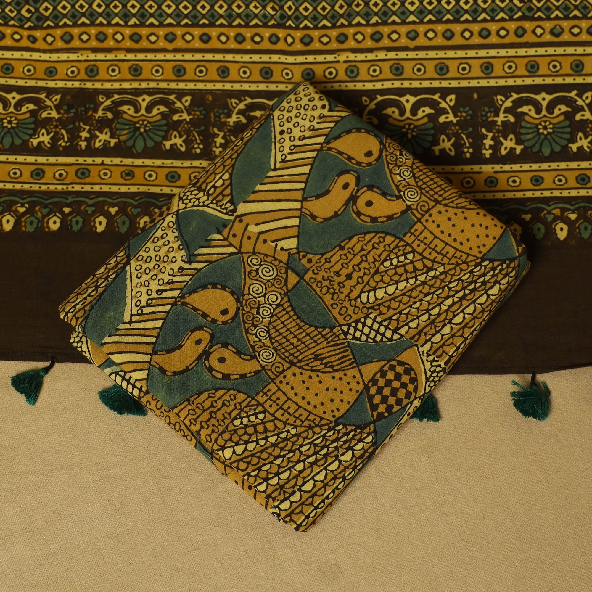 Elevate your style with the timeless beauty of this 3pc brown ajrakh hand-block-printed cotton suit material set, made using natural dyes through the traditional ajrakh technique of hand-block printing practiced by the artisans in the Kutch region of Gujarat. The intricate patterns and vibrant colors on the cotton fabric create a perfect blend of elegance and comfort, making it ideal for any special occasion.
