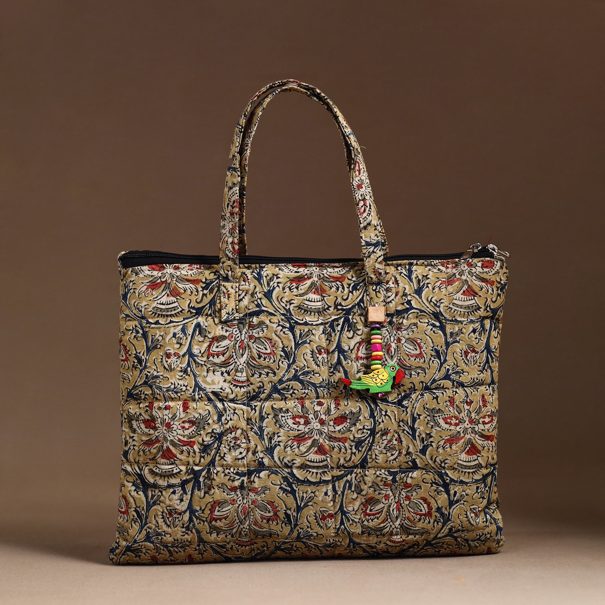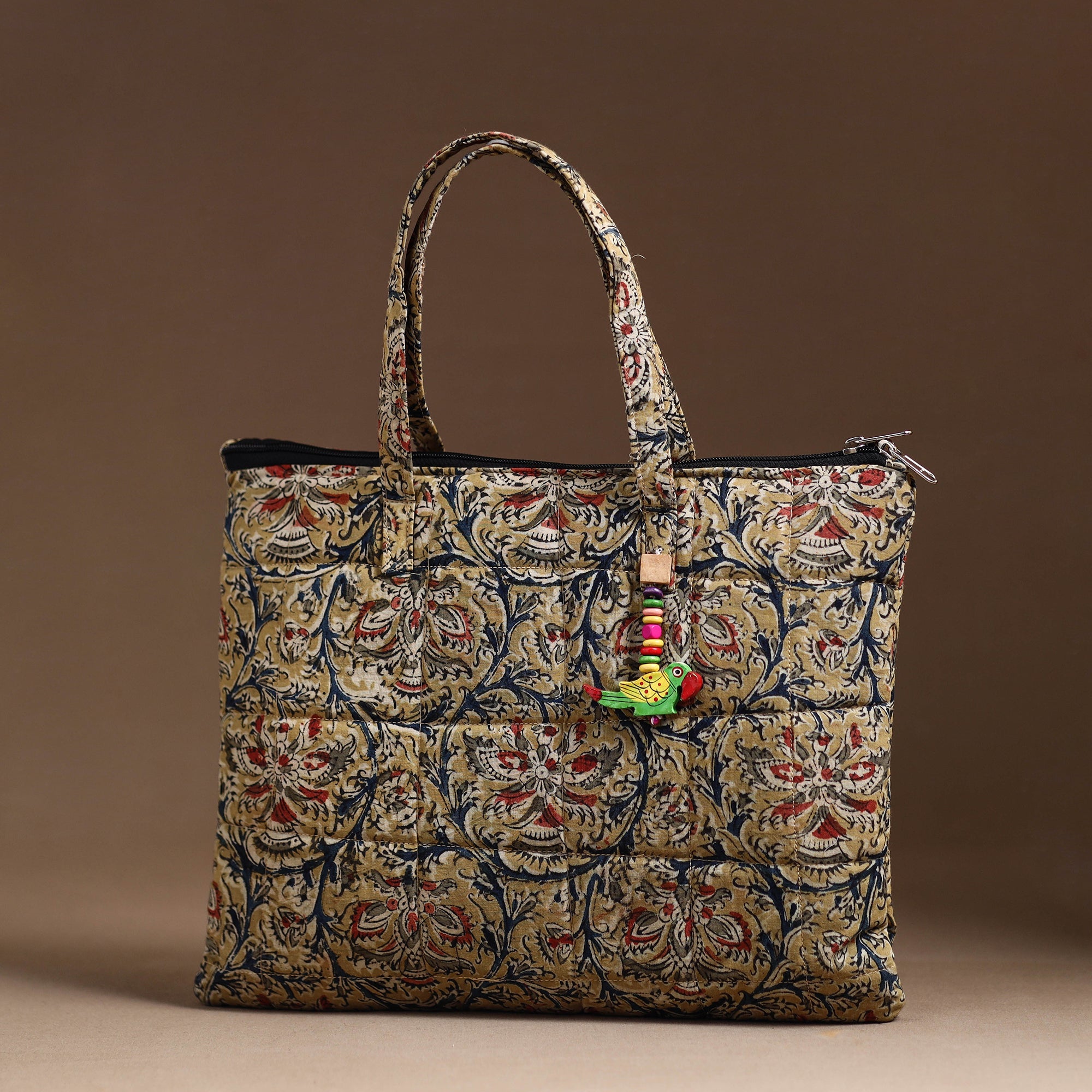 This yellow hand bag is made from handcrafted quilted cotton fabric. This hand bag with a zip-lock main closure, providing ample space for your essentials. The foam layer lining ensures durability and protection. Enhance your style with this unique, functional accessory.