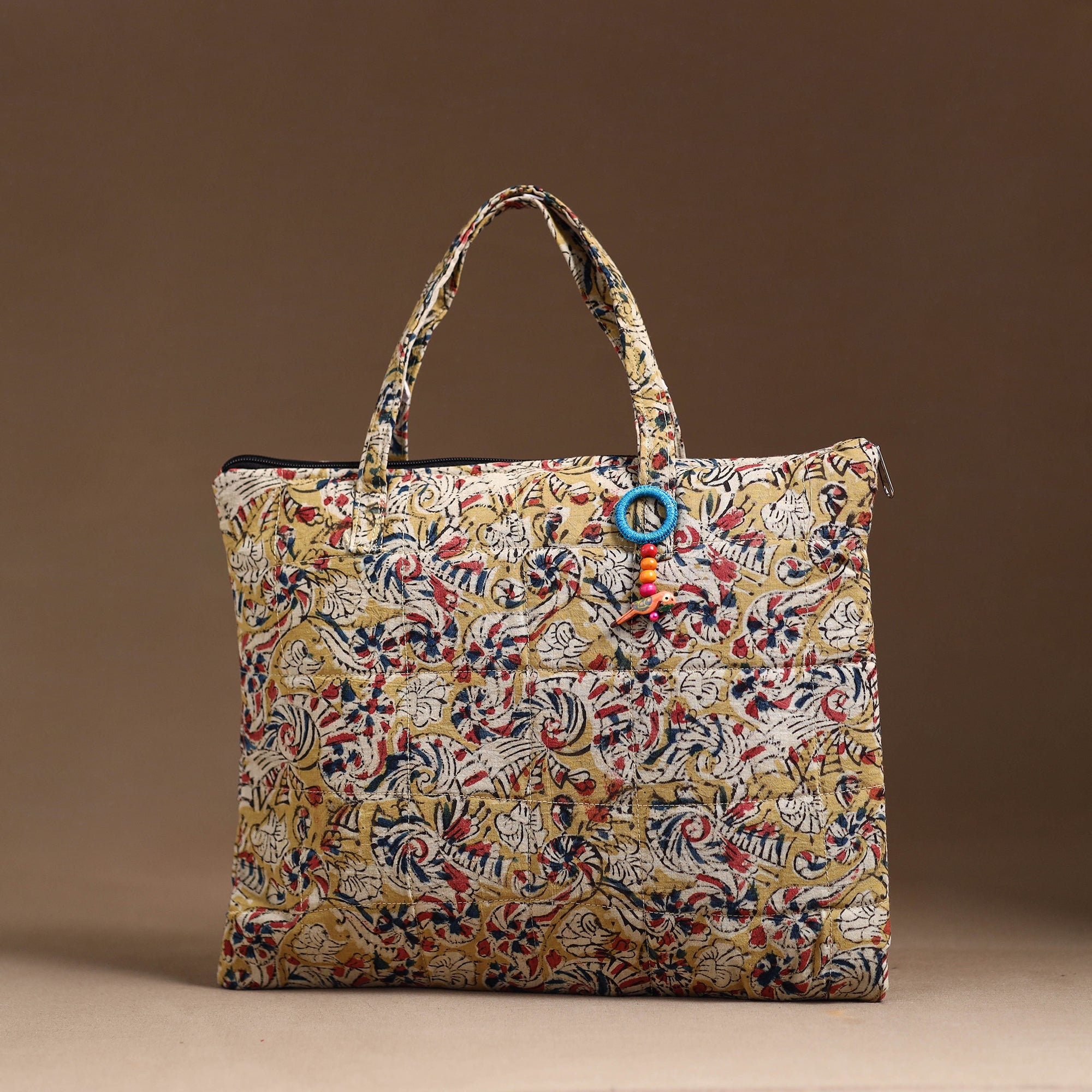 This beige hand bag is made from handcrafted quilted cotton fabric. This hand bag with a zip-lock main closure, providing ample space for your essentials. The foam layer lining ensures durability and protection. Enhance your style with this unique, functional accessory.