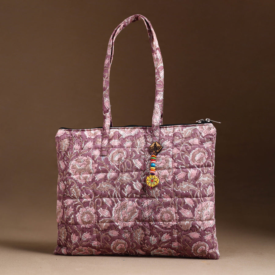 This purple hand bag is made from handcrafted quilted cotton fabric. This hand bag with a zip-lock main closure, providing ample space for your essentials. The foam layer lining ensures durability and protection. Enhance your style with this unique, functional accessory.