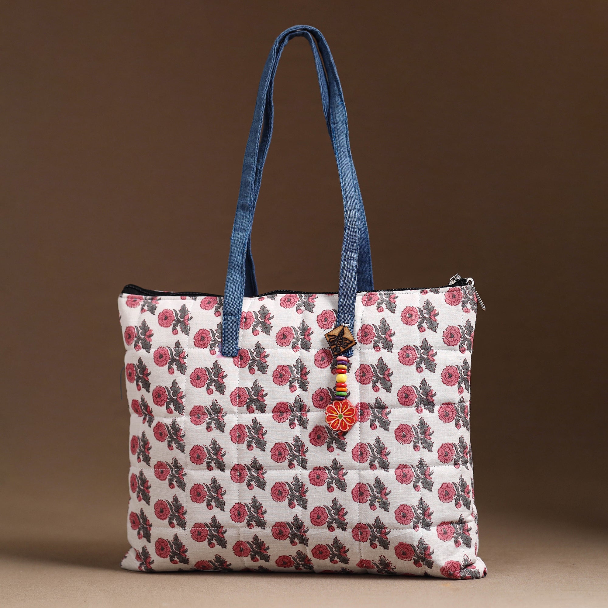 This pink hand bag is made from handcrafted quilted cotton fabric. This hand bag with a zip-lock main closure, providing ample space for your essentials. The foam layer lining ensures durability and protection. Enhance your style with this unique, functional accessory.