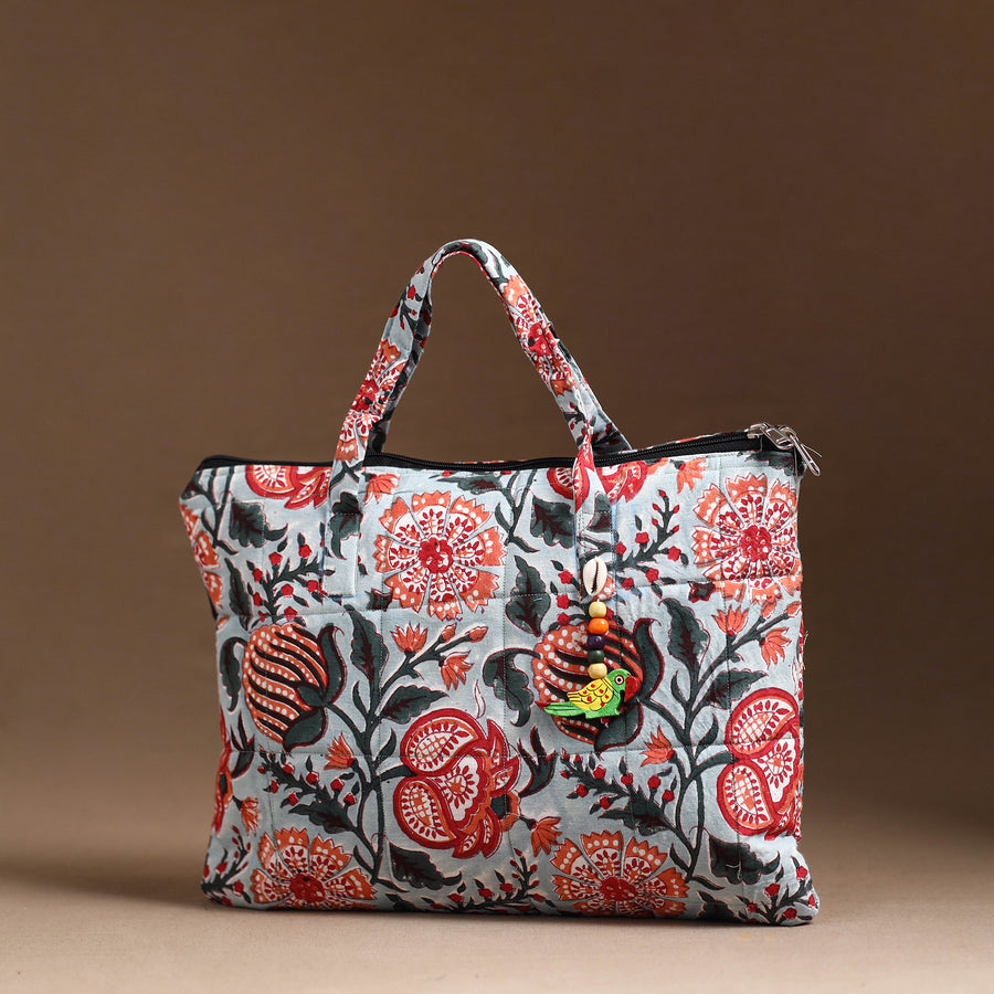 This blue hand bag is made from handcrafted quilted cotton fabric. This hand bag with a zip-lock main closure, providing ample space for your essentials. The foam layer lining ensures durability and protection. Enhance your style with this unique, functional accessory.