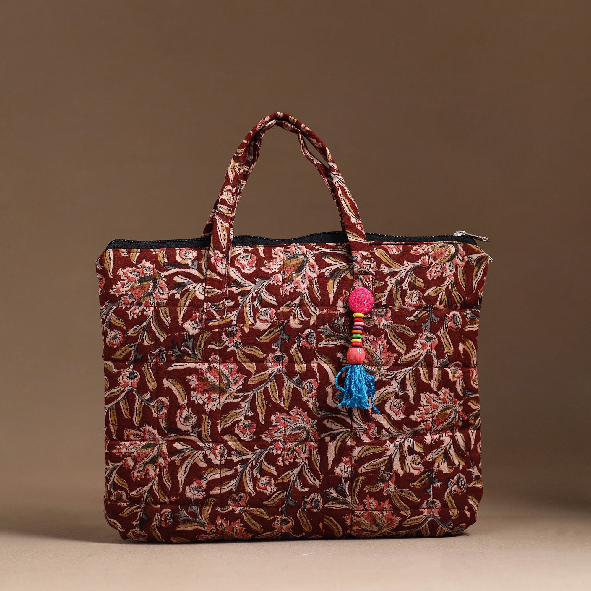 This maroon hand bag is made from handcrafted quilted cotton fabric. This hand bag with a zip-lock main closure, providing ample space for your essentials. The foam layer lining ensures durability and protection. Enhance your style with this unique, functional accessory.