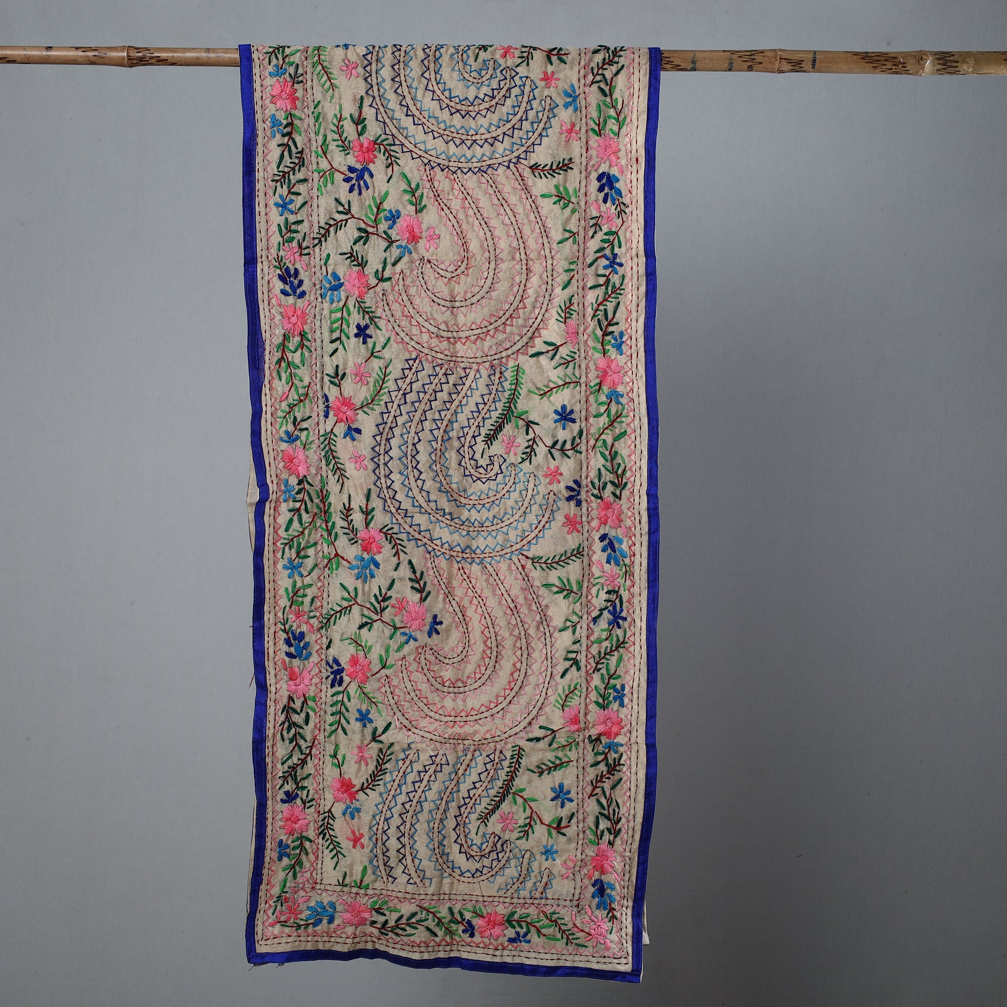 This beautiful blue stole is designed with traditional patterns and has been hand-embroidered by skilled craftspeople from Ranihati, Howrah, West Bengal.