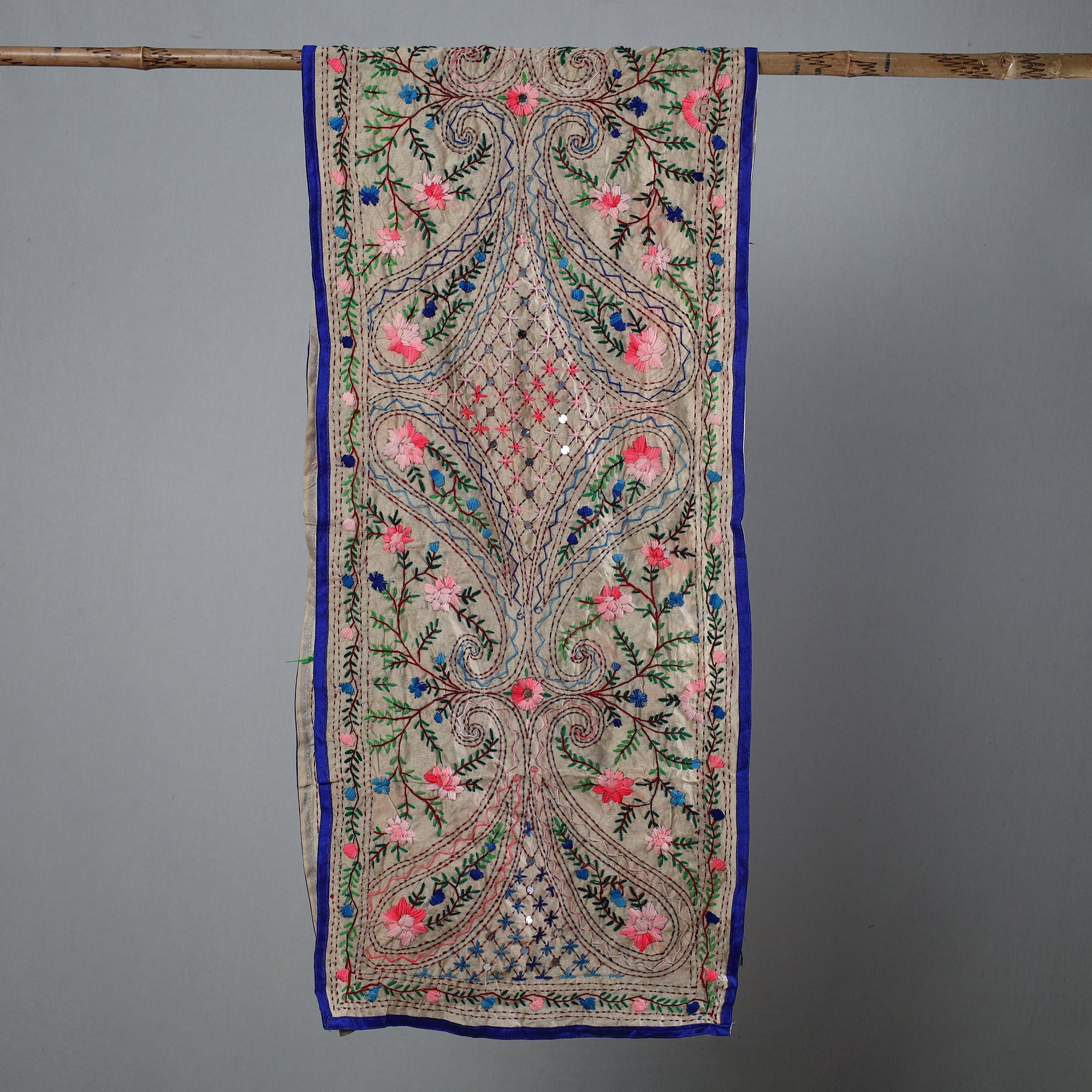 Phulkari is a supremely refined embroidery work practiced in the Punjab region. The meaning of the word phul is flower while Kari means to craft. It is the art of creating beautiful intricate designs and motifs on fabrics using different colored threads.