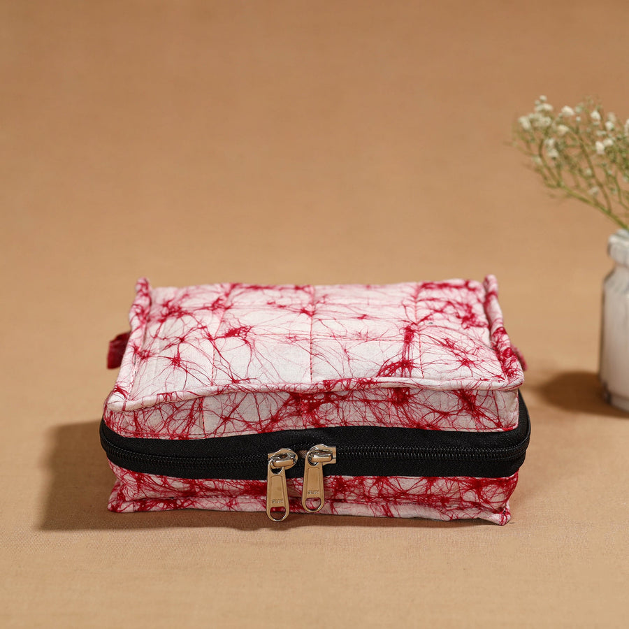 Pink handmade 4-pocket cotton jewelry bag. It has four spacious pockets that provide ample room for storing and organizing your favorite jewelry pieces.