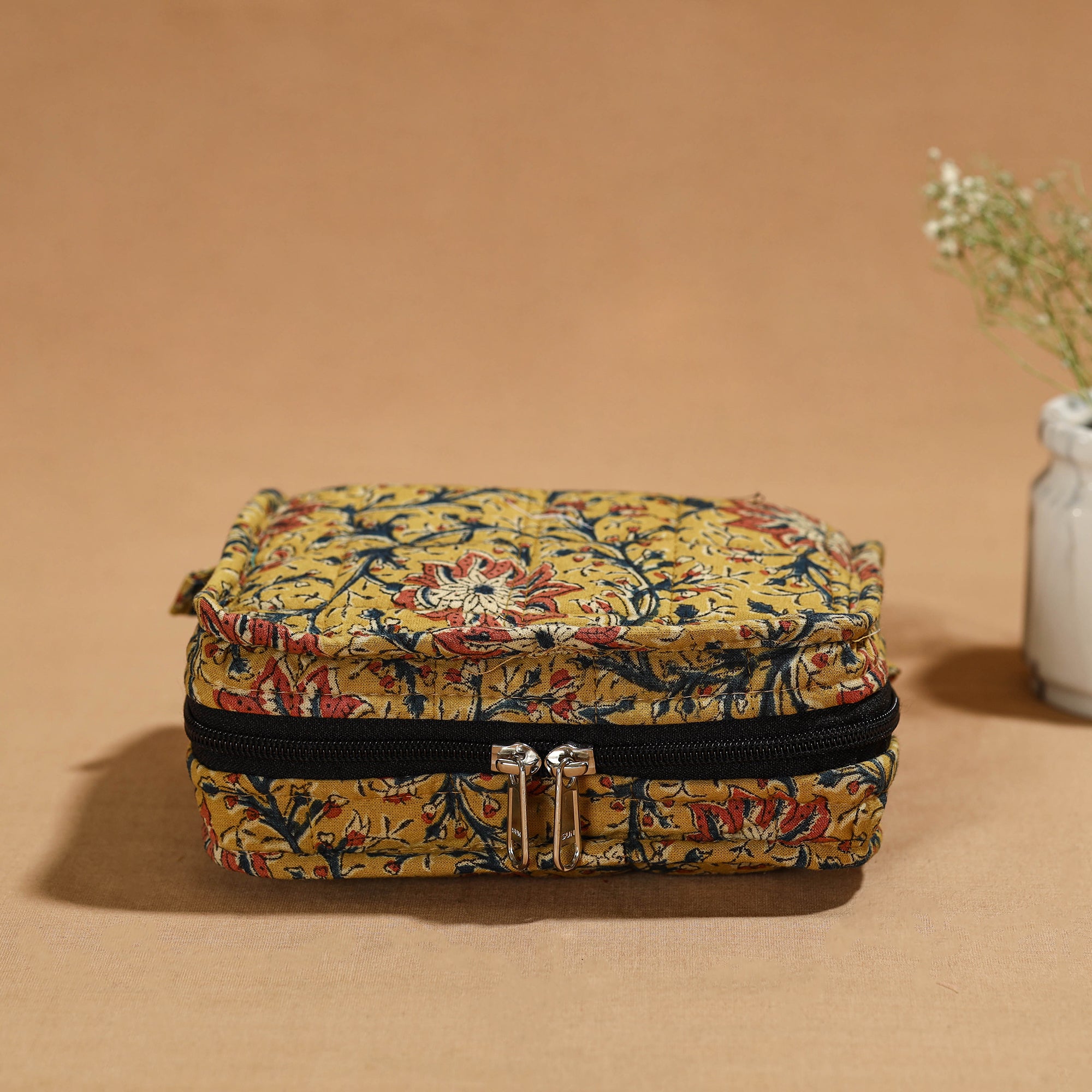 | Material | Yellow handmade 4-pocket cotton jewelry bag. It has four spacious pockets that provide ample room for storing and organizing your favorite jewelry pieces. |