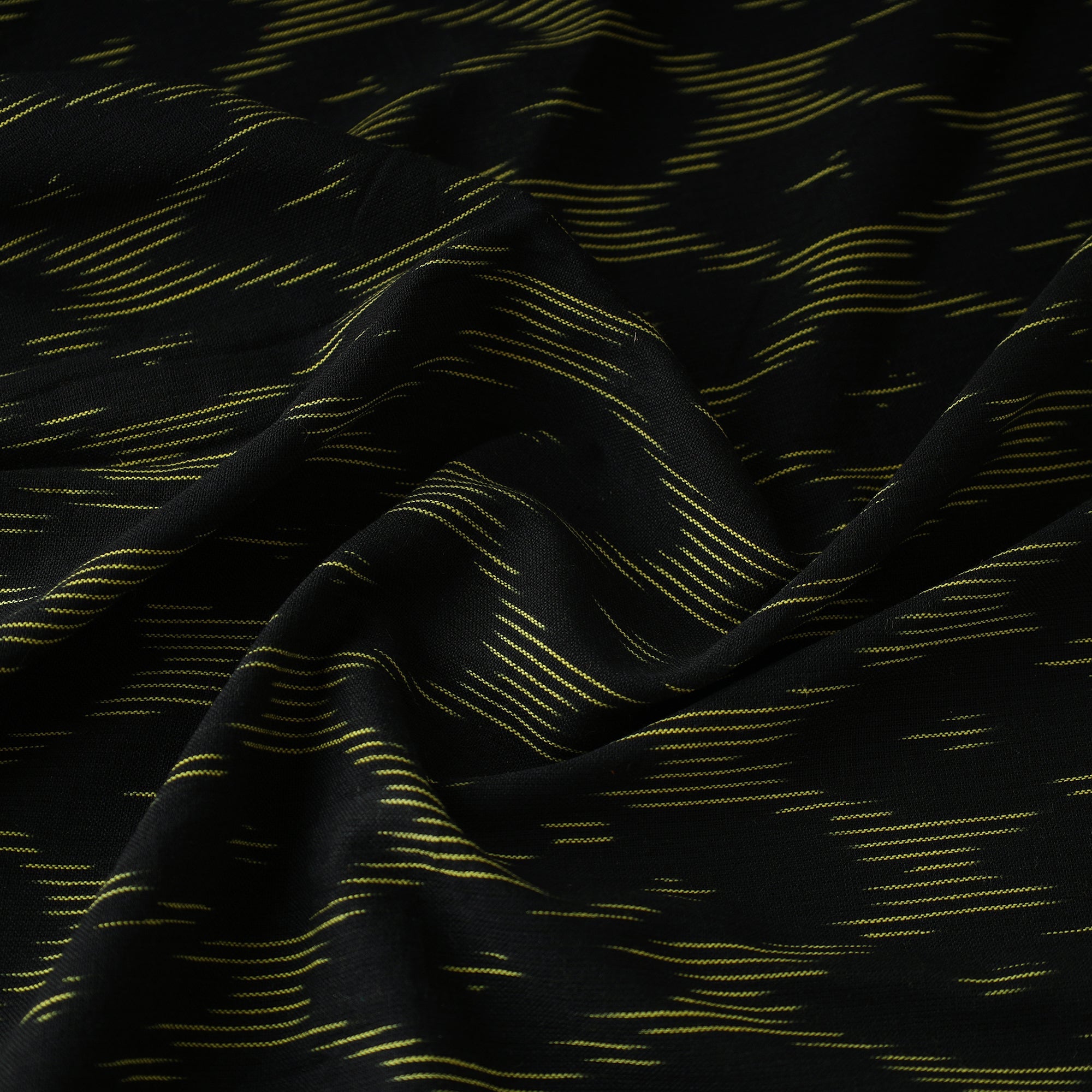 Fine quality pochampally ikat weave cotton fabric from Telangana. Ikat (Ikkat) is a dyeing technique used to pattern textiles that employs a resist dyeing process similar to tie-dye on either the warp or weft fibers prior to dyeing. Ikat has lovely patterns and are world famous for their extremely beautiful colors, texture and designs. Indian Ikat is always admired by the fashion designers around the world.