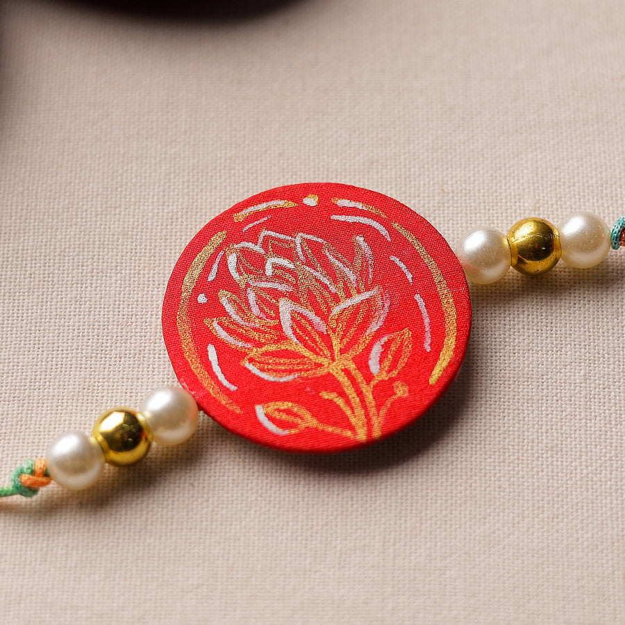 | Material | Celebrate the bond of love and affection with our exquisite Bishnupur handpainted fabric rakhi. Addornal with beads, shells, and kundan Each rakhi is a masterpiece, meticulously handcrafted by skilled artisans from Bishnupur, West Bengal, renowned for their intricate handpainting techniques. By purchasing Rakhi from iTokri, you have proudly associated yourself with our artisan support initiative, which brings happiness to more than 10,000 families across India. Thanks so much! |
