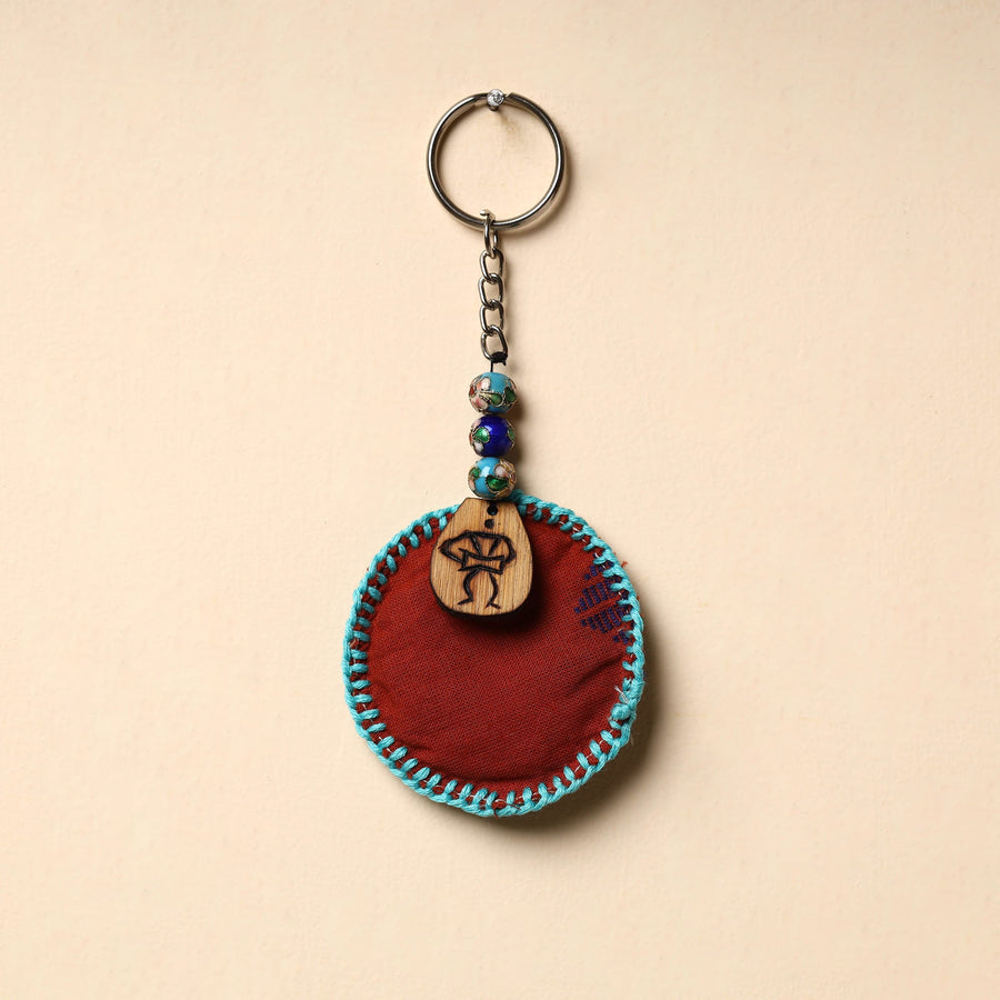 Handcrafted red fab artwork keychain. This beautiful keychain is made of cotton fabric with foam stuffing inside. Ideal for adding a touch of charm to your keys.