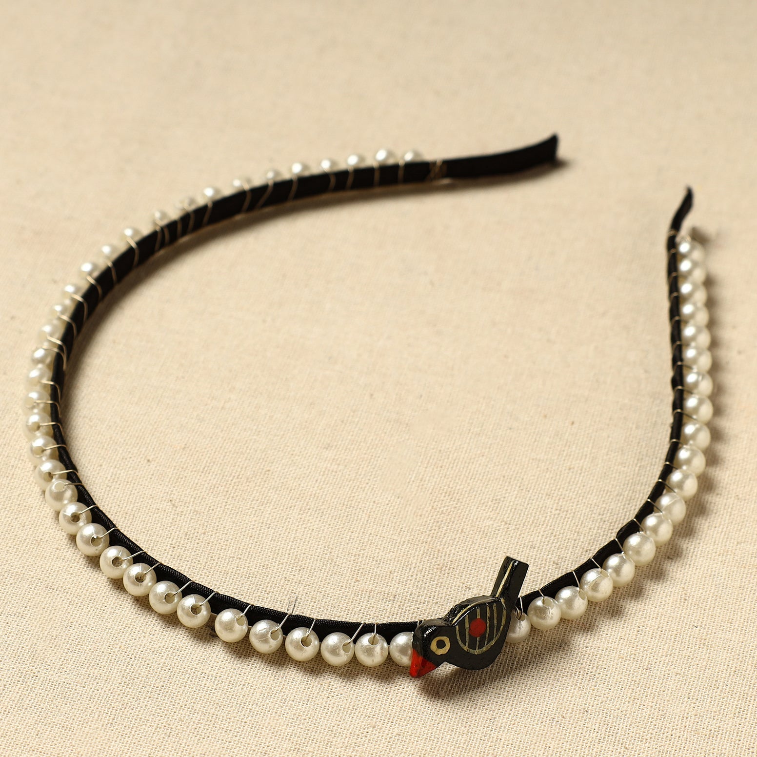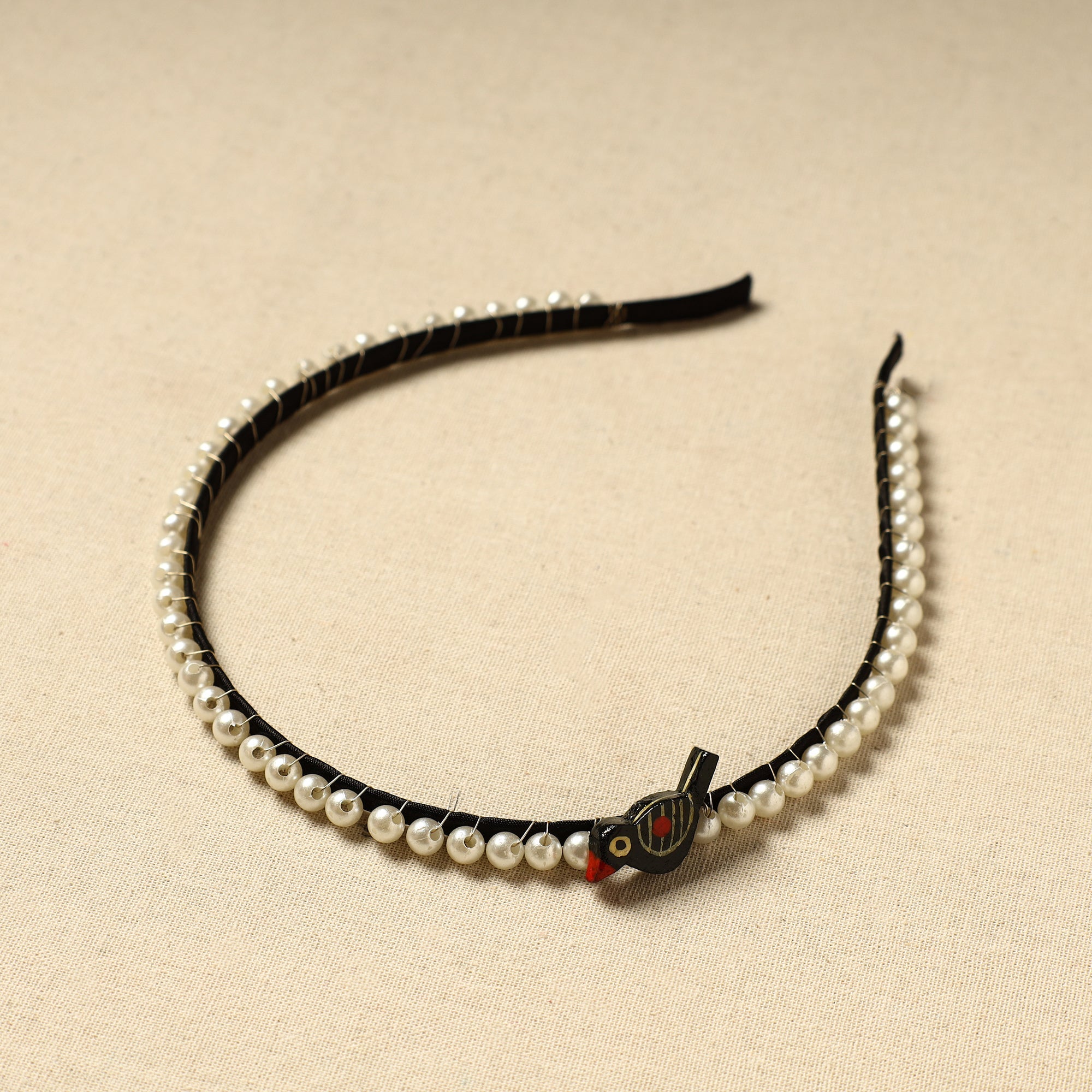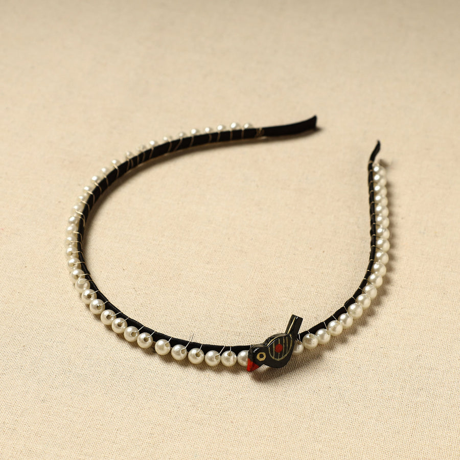 Elevate your hairstyle with our handmade bead work hair band, featuring delicate beadwork and a charming wooden bird. It adds a unique, artisanal flair to any hairstyle, making it ideal for everyday wear or special occasions.