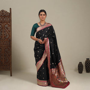 Black - 3pc Bangalore Silk Paithani Dress Material 06