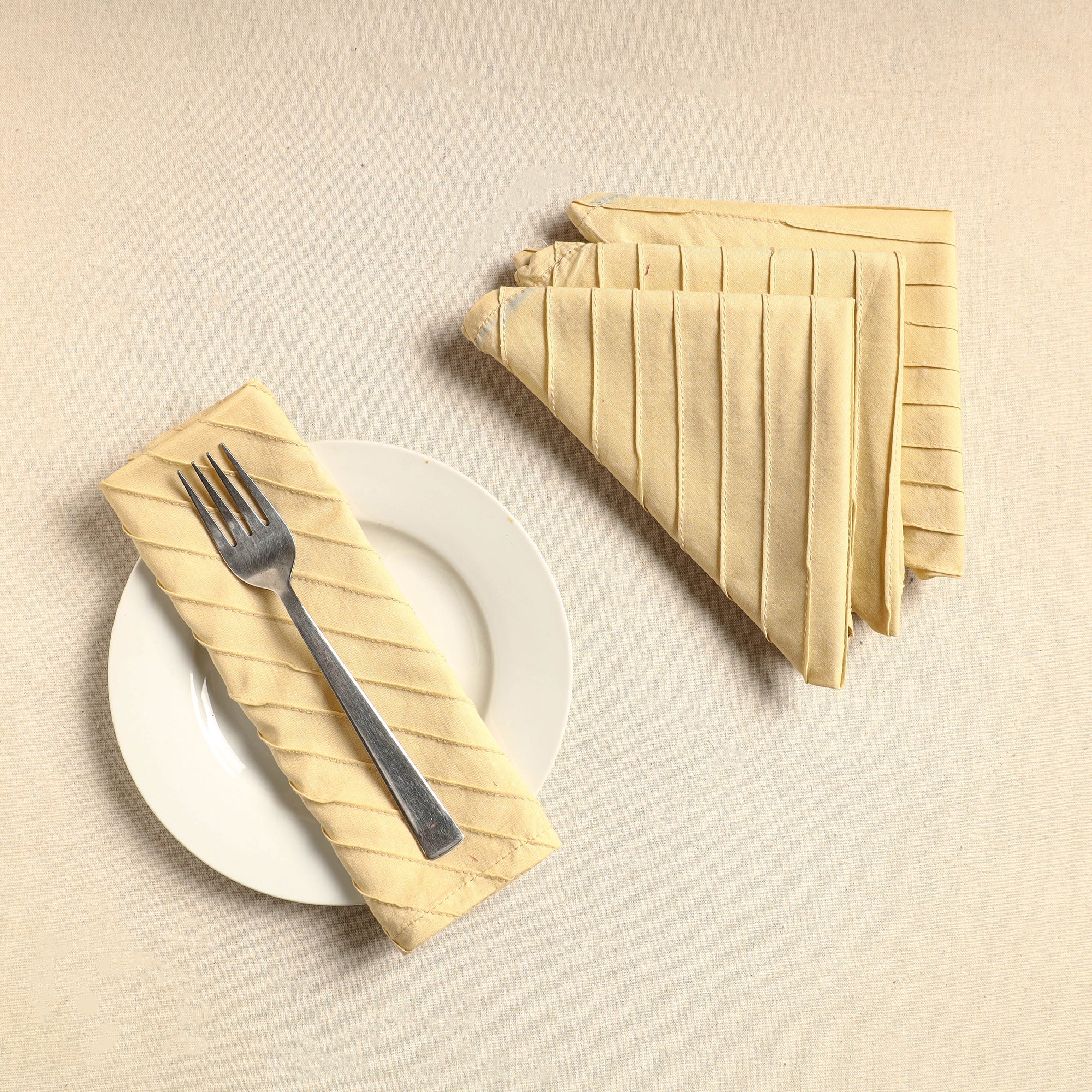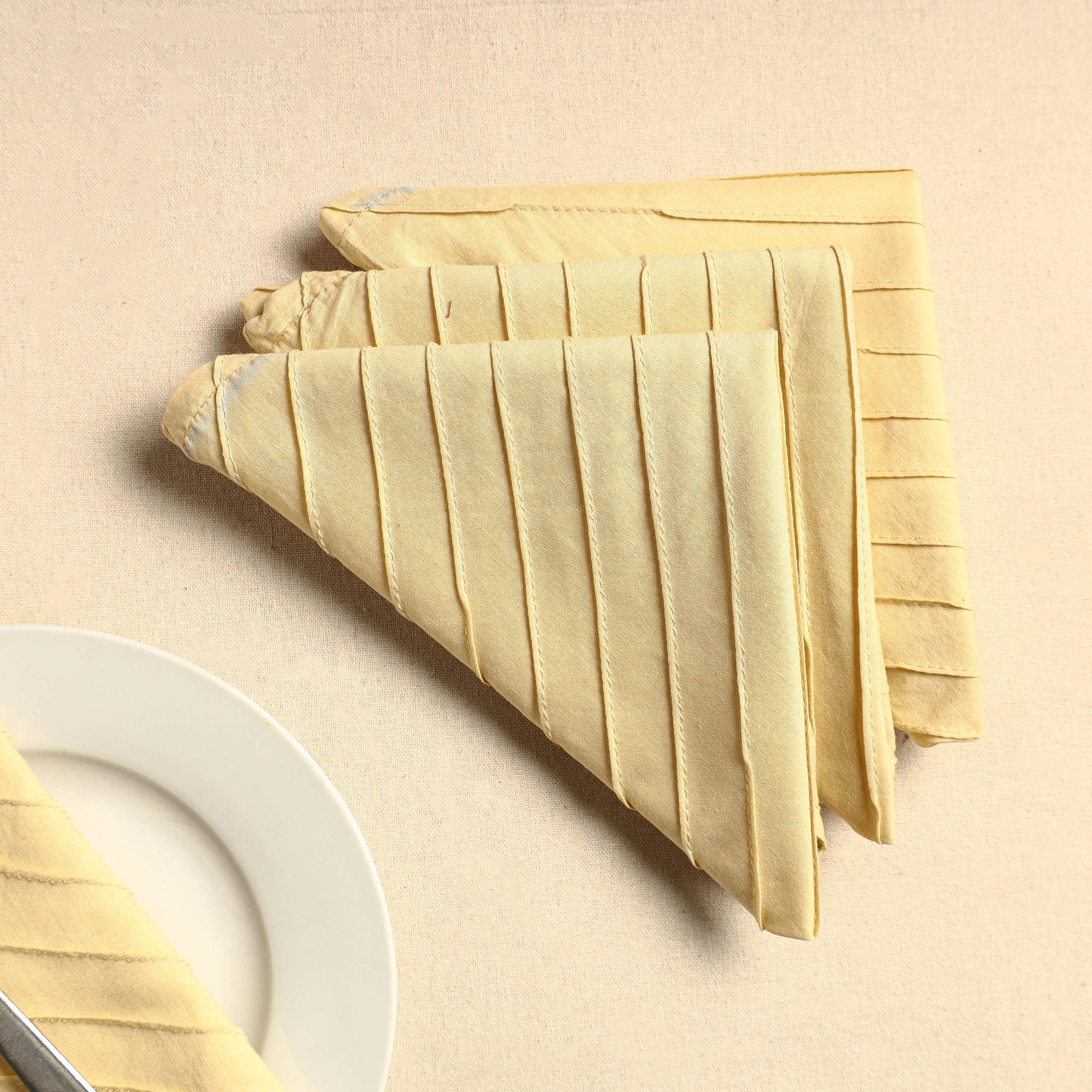Beige pintuck plain cotton table napkins offer a blend of elegance and practicality. Crafted from high-quality cotton, their pintuck detailing adds a stylish touch. Ideal for formal or casual dining, they enhance table settings with a sophisticated charm, ensuring durability and easy maintenance.