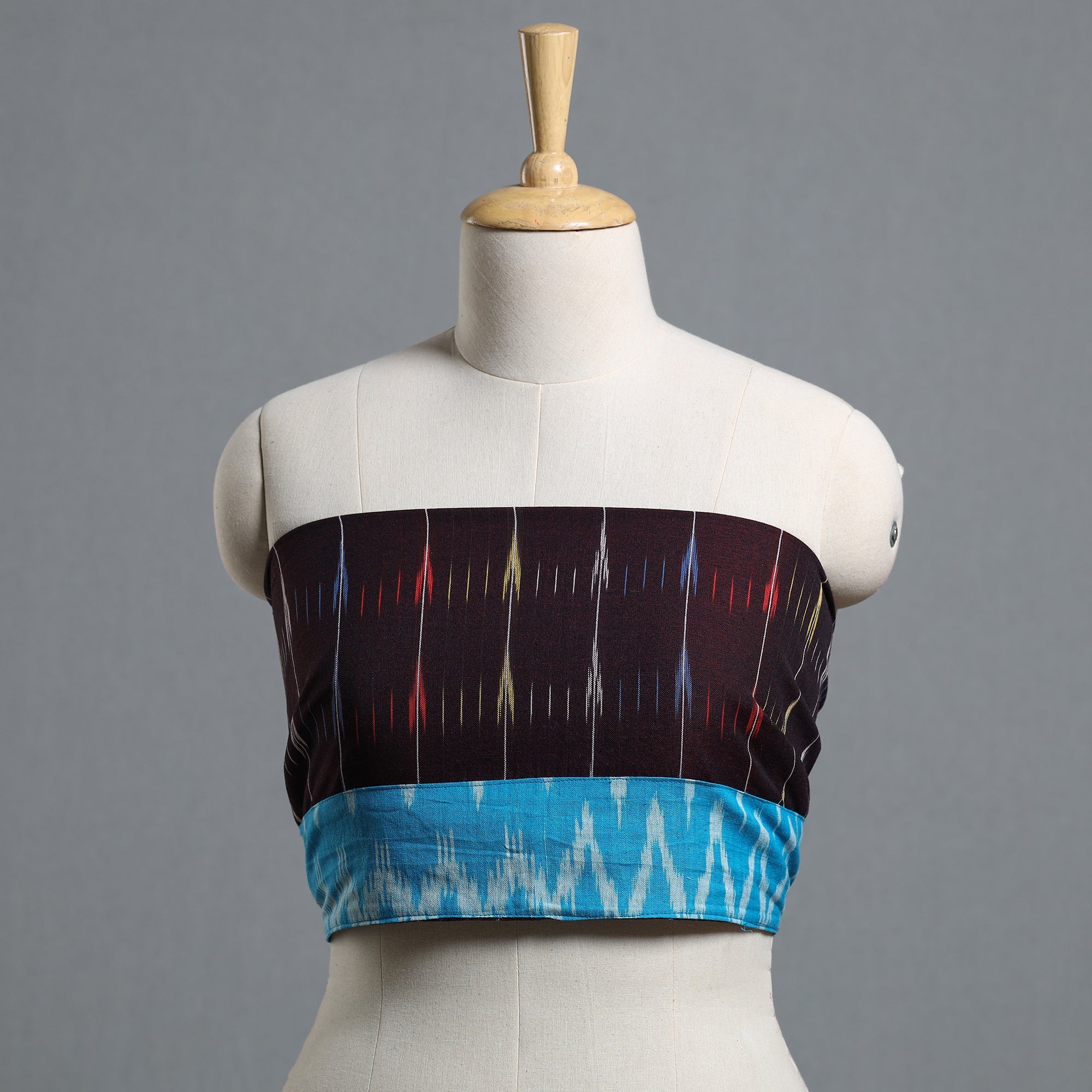 Fine quality ikat cotton blouse piece crafted with traditional handmade textiles of India. This mix and match blouse material is perfect to pair with any saree, adding a touch of elegance to your ensemble.