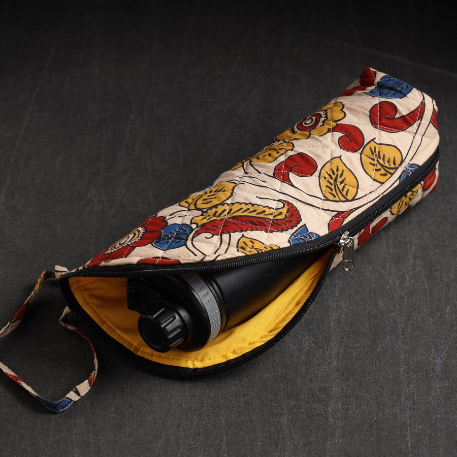 This handmade beige cotton water bottle cover is a charming blend of tradition and functionality. It has a foam layer lining inside and a zipper main closure. Crafted from high-quality cotton, this cover adds a touch of elegance to your hydration routine.