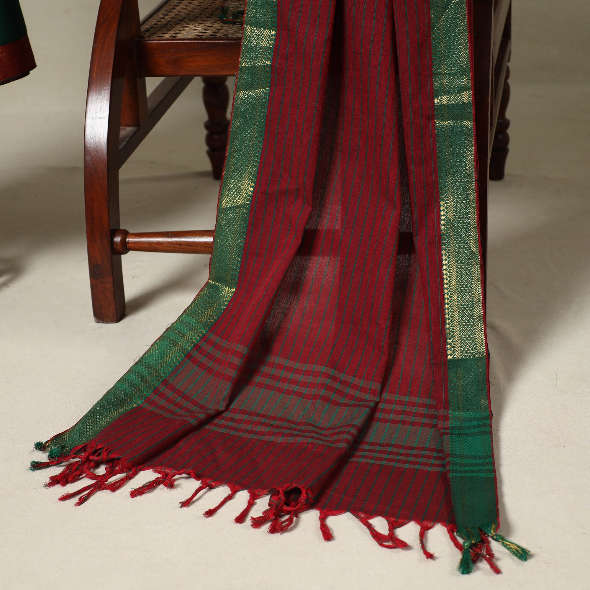Green - 3pc Cotton Unstitched Dharwad Dress Material with Border 50