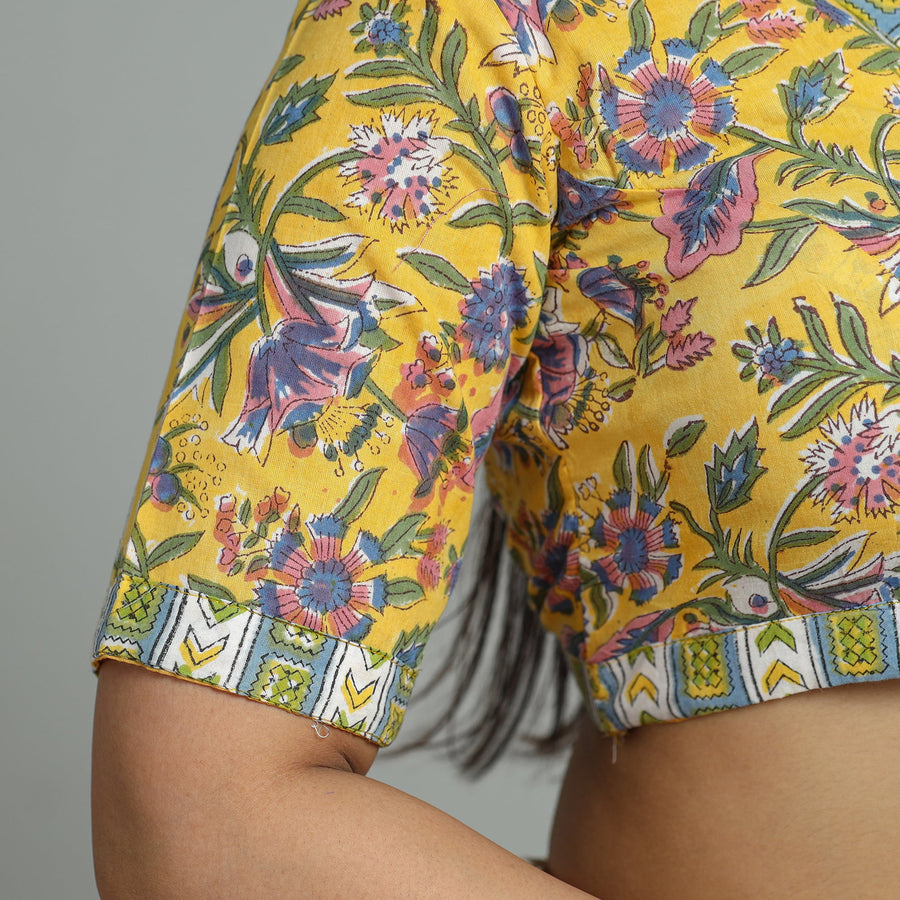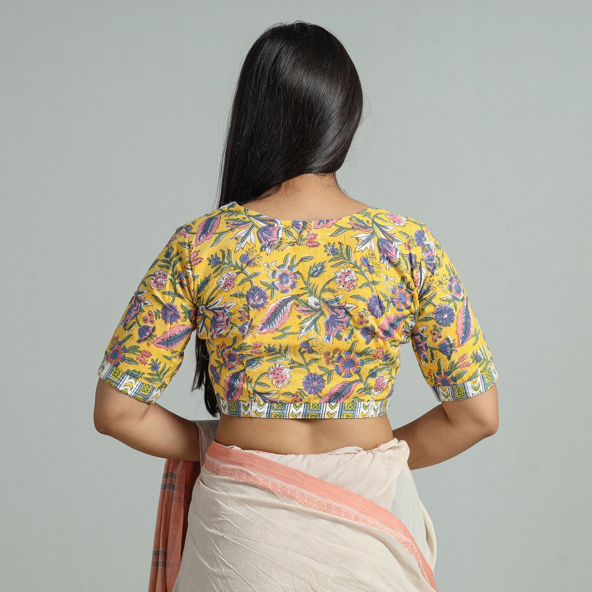 This Sanganeri block-printed cotton blouse is seamlessly stitched with padded comfort for a relaxed fit. Crafted from cotton fabric known for its breathability and comfort. It features half sleeves that provide balanced coverage, and the hook lock adds convenience and allows for easy wear and removal, making it perfect for any occasion.