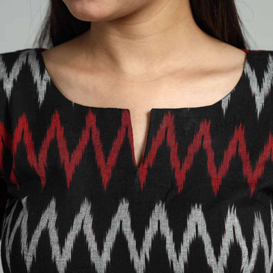 This pochampally ikat cotton blouse is seamlessly stitched with padded comfort for a relaxed fit. Crafted from cotton fabric known for its breathability and comfort. It features a zipper lock and half sleeves that provide balanced coverage, making it perfect for any occasion.