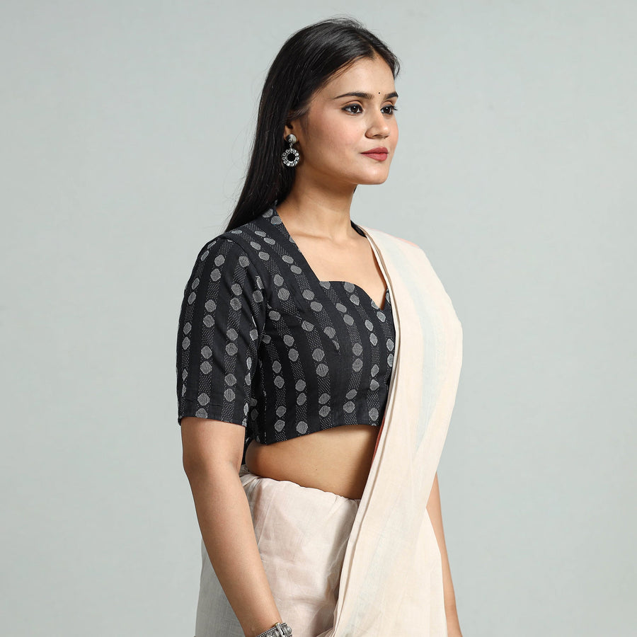 This jacquard-weave cotton blouse is seamlessly stitched with padded comfort for a relaxed fit. Crafted from cotton fabric known for its breathability and comfort. It features a side zipper lock and half sleeves that provide balanced coverage, making it perfect for any occasion. This piece carries tiny knots, thread pulls, or uneven lines — not flaws, but fingerprints. Every irregularity is a whisper from the hands that made it. It’s what happens when tradition weaves through time, not machines. If you’re looking for perfection, this isn’t it. But if you’re looking for soul — you’ve found it.