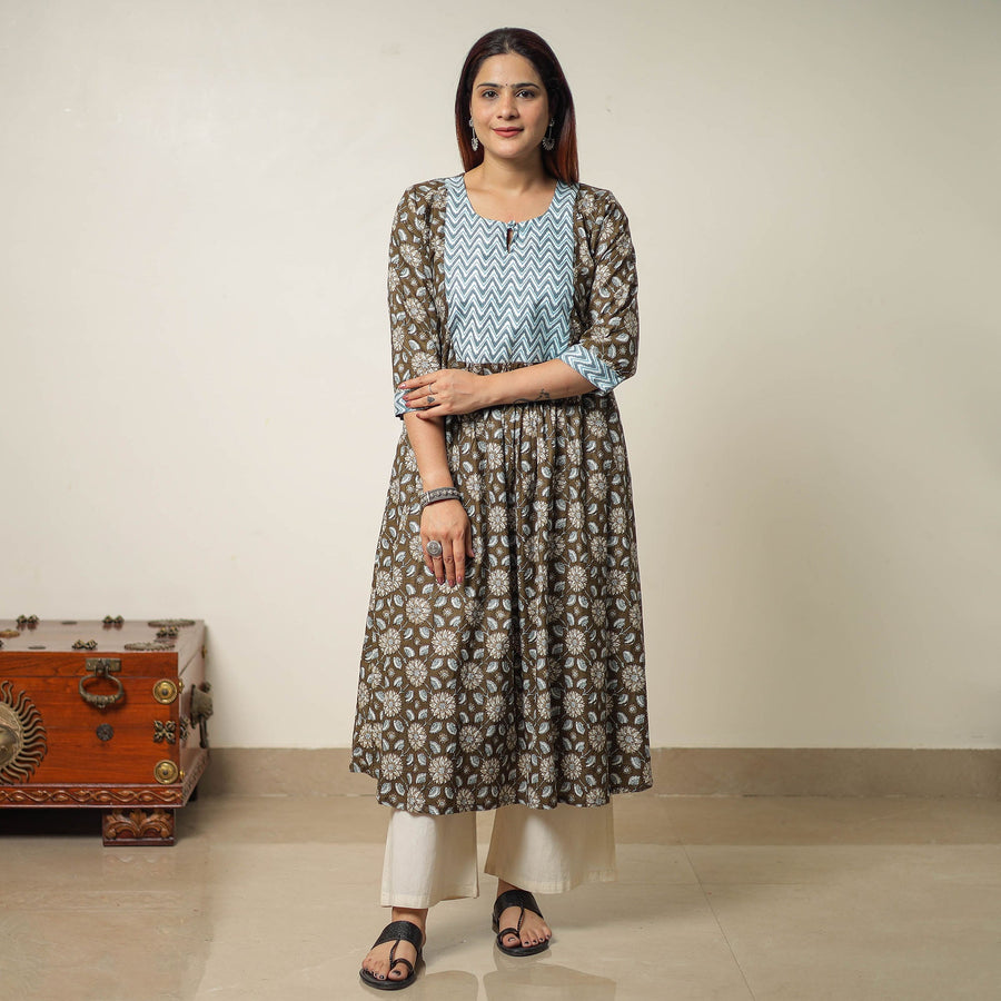 Look and feel beautiful in this uniquely designed jaipur-printed cotton a-line kurta. This kurta is crafted from cotton fabric, ensuring a comfortable feel against your skin. It boasts an exquisite patchwork design, adding a touch of elegance to your ensemble. The kurta also features a convenient one-side pocket, perfect for carrying small essentials. It's an ideal choice for both casual and festive occasions.