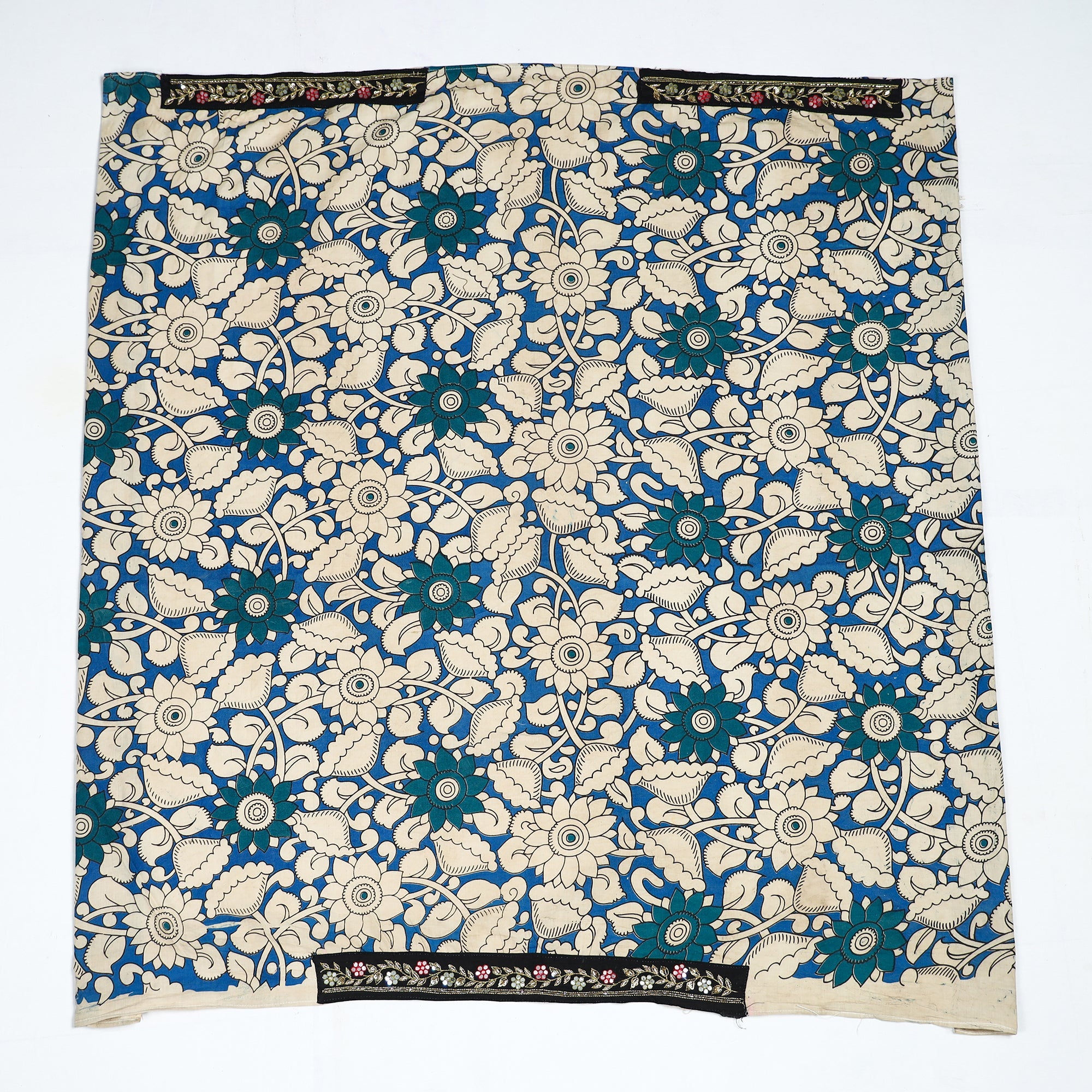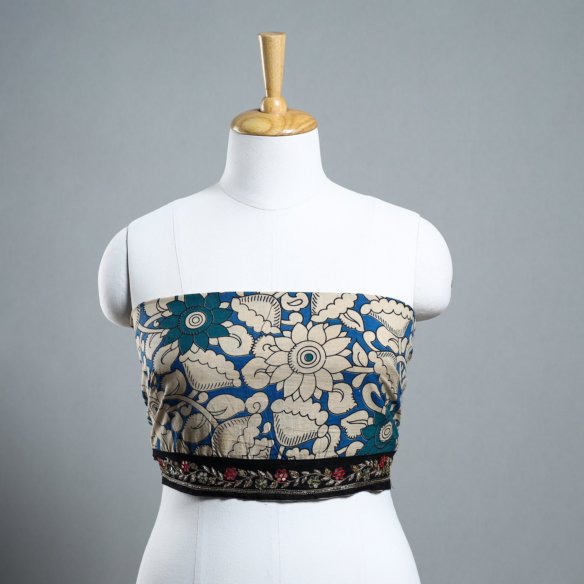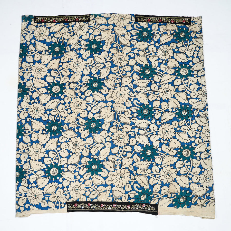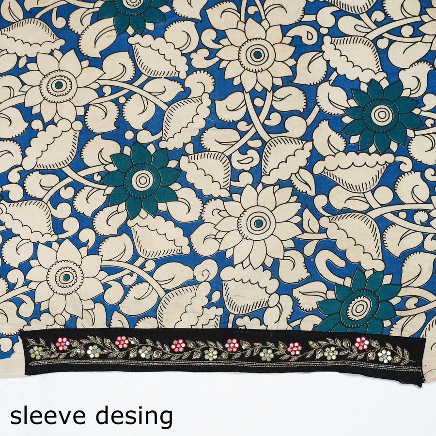 Material Fine-quality zardozi hand-embroidered kalamkari printed cotton blouse material made from cotton fabrics & textured with handmade textiles of India.
