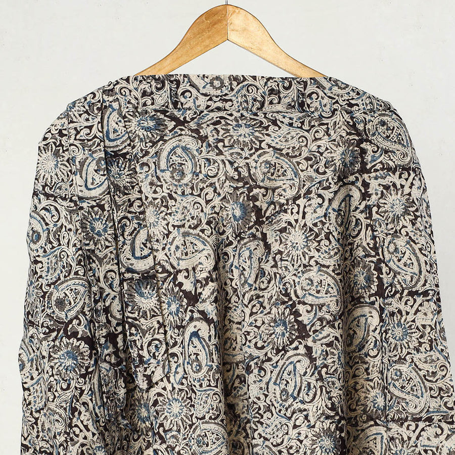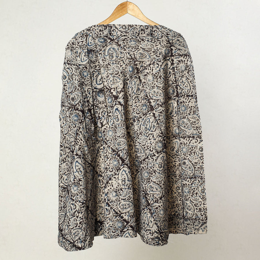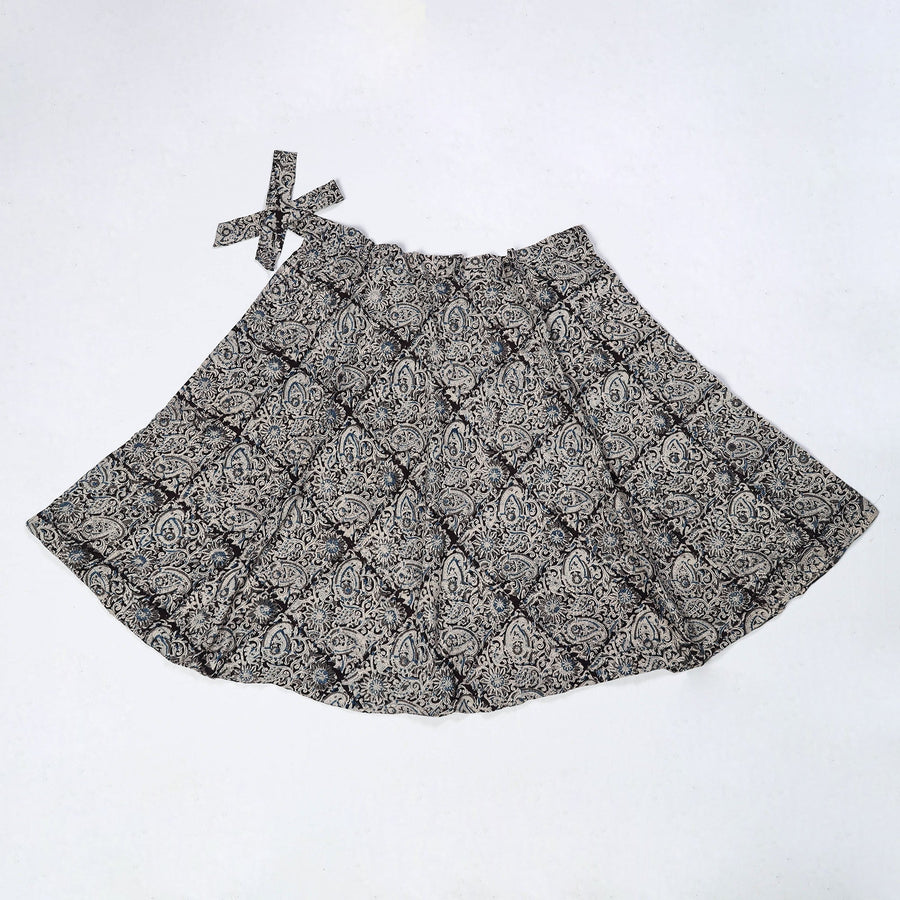 This kalamkari block-printed cotton wrap-around skirt seamlessly blends tradition with contemporary fashion. The waist tie-up closure ensures a customized fit, while the intricate Kalamkari craft adds a touch of artistry. Perfect for casual outings or special occasions, this skirt exudes elegance and comfort.