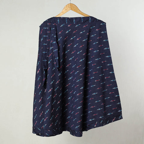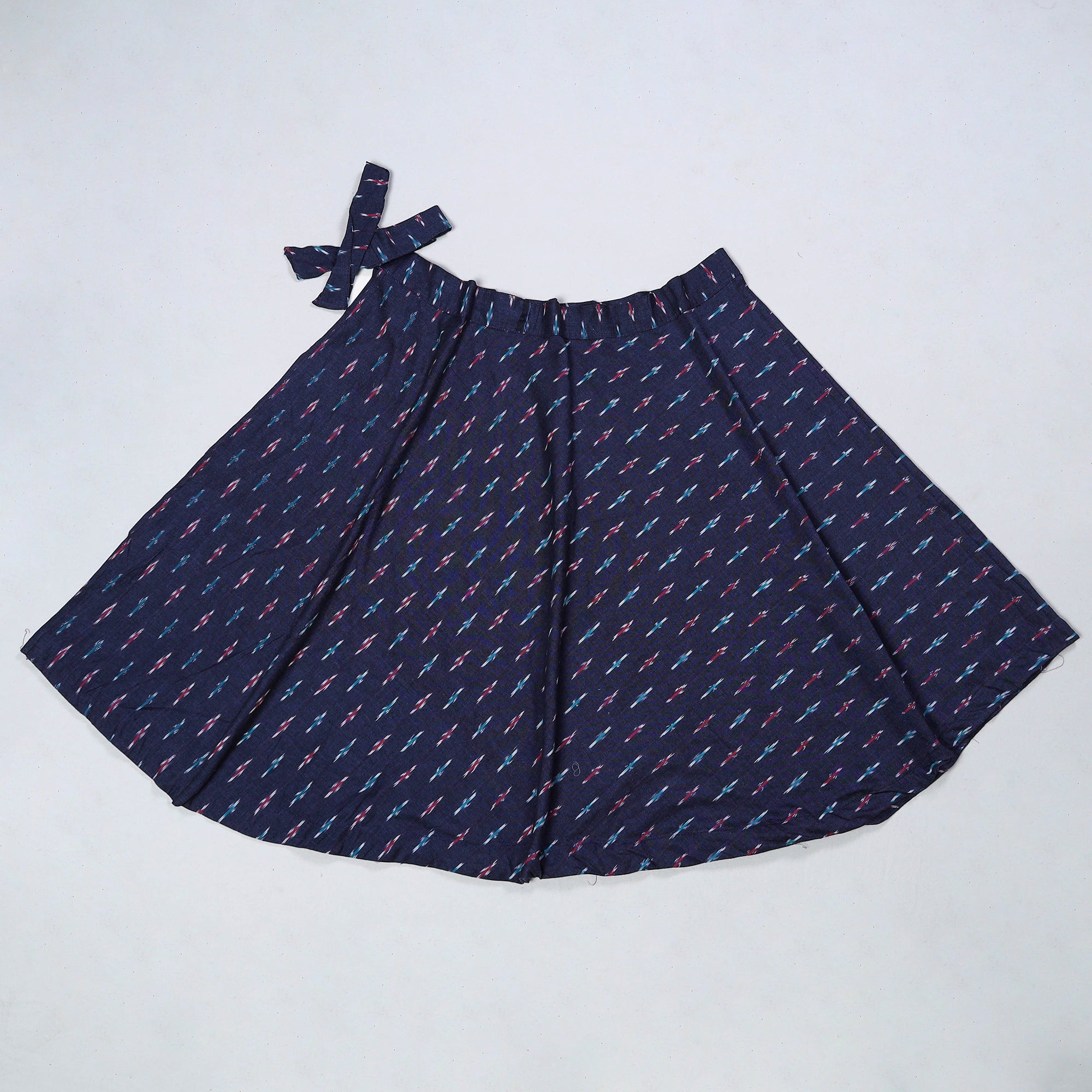 Elevate your style with this blue pochampally ikat weave cotton wrap around skirt. Featuring a waist tie-up closure, this skirt is stylish and comfortable to wear. The ikat (ikkat) dyeing technique used in this skirt creates beautiful patterns and designs, making it a standout piece in your wardrobe.