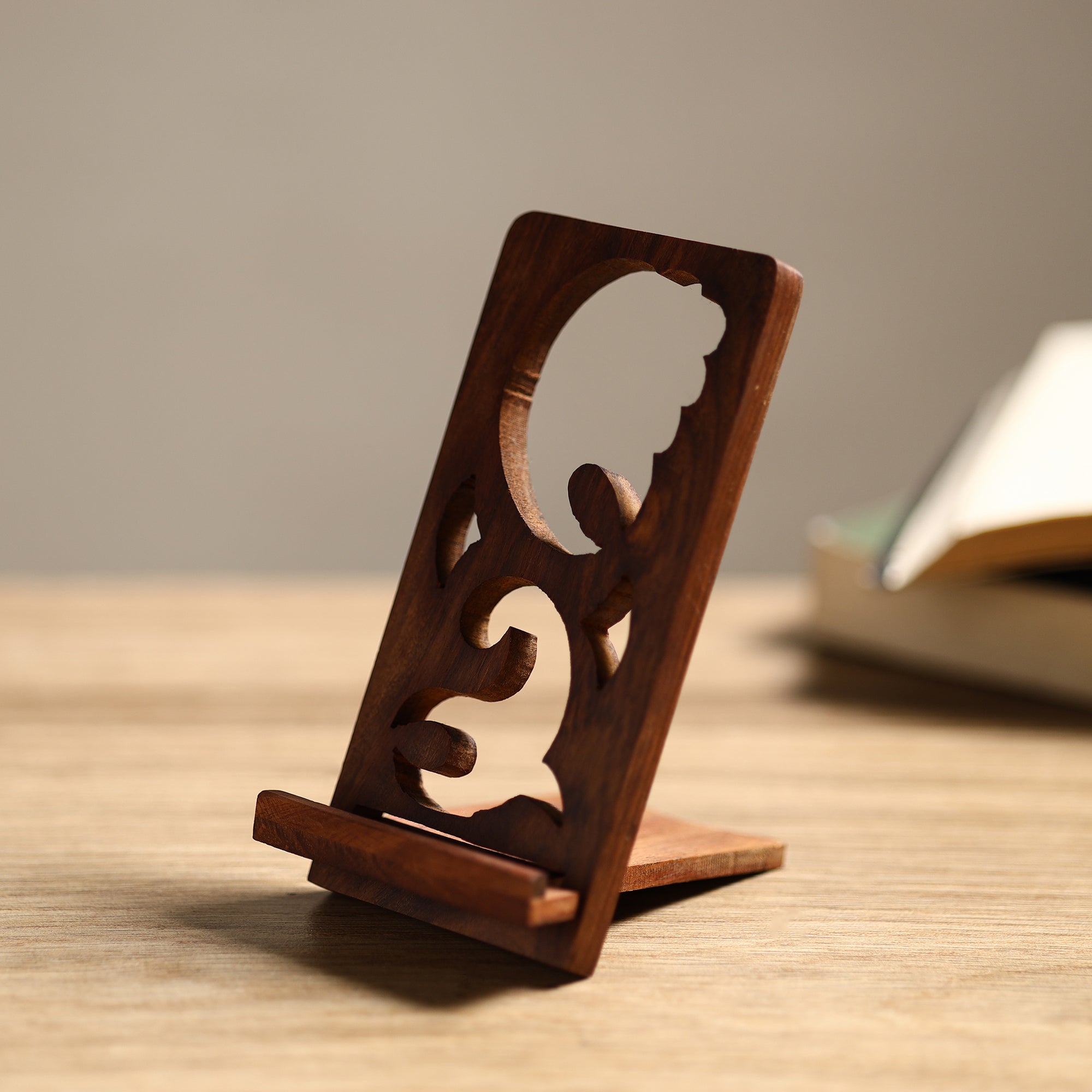 This handcarved wooden mobile stand are made with sheesham wood. Beautifully designed to enhance the beauty of your special corner of your room. It's portable handy can also be carried while traveling. Do, Check out our latest collection of these wooden handcrafted stand.